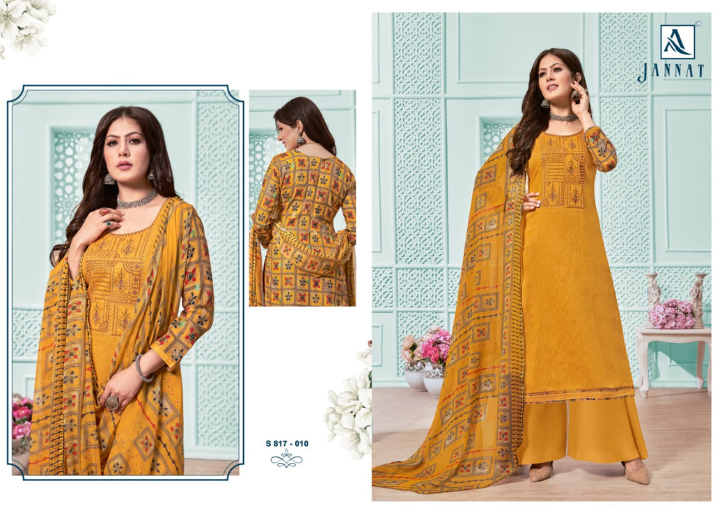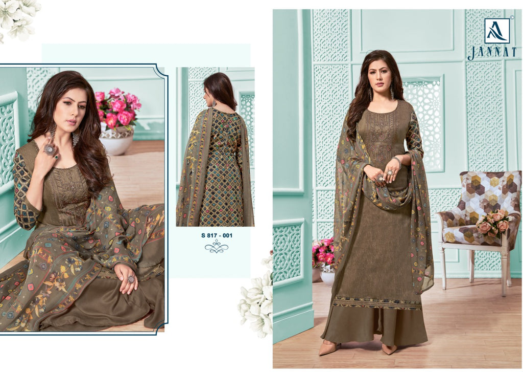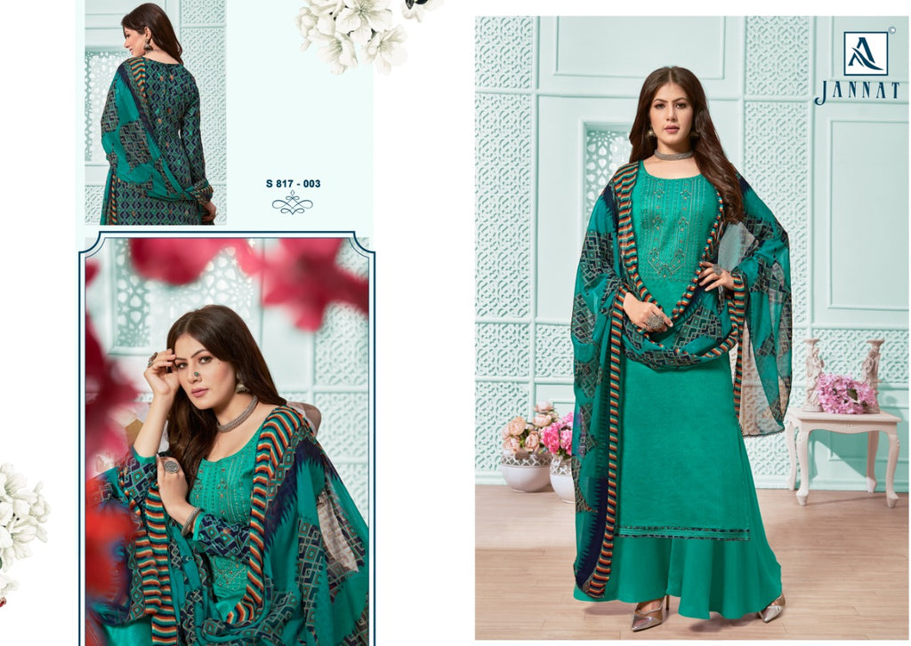 Top: Pure Zam Front Side Negative Print & Fancy Printed Back with Embroidery & Swarovski Diamond Work Bottom: Pure Cotton Solid Dupatta: Pure Nazneen Chiffon Print |