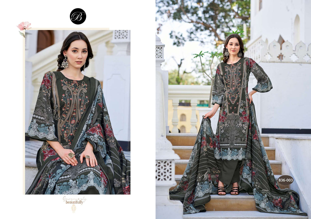 top: 100% pure cotton digital prints with exclusive heavy self embroidery (2.50 mtrs apx) dupatta: 100% pure mal mal cotton dupatta digital print (2.30 mtrs apx) bottom: 100% pure cotton (3 mtrs apx) |