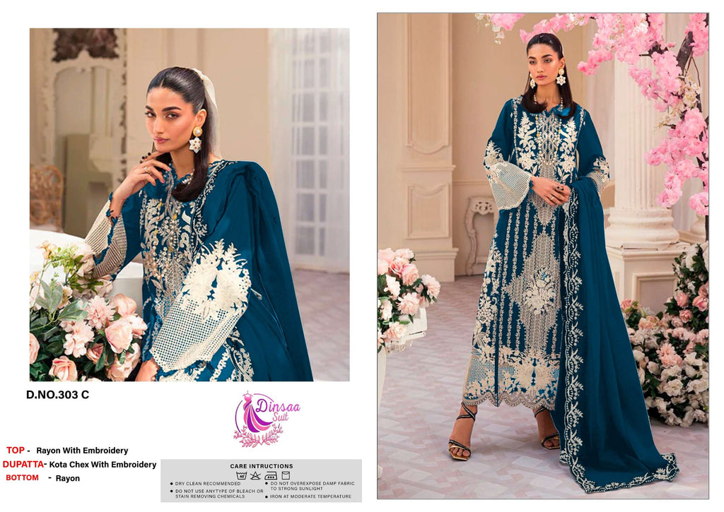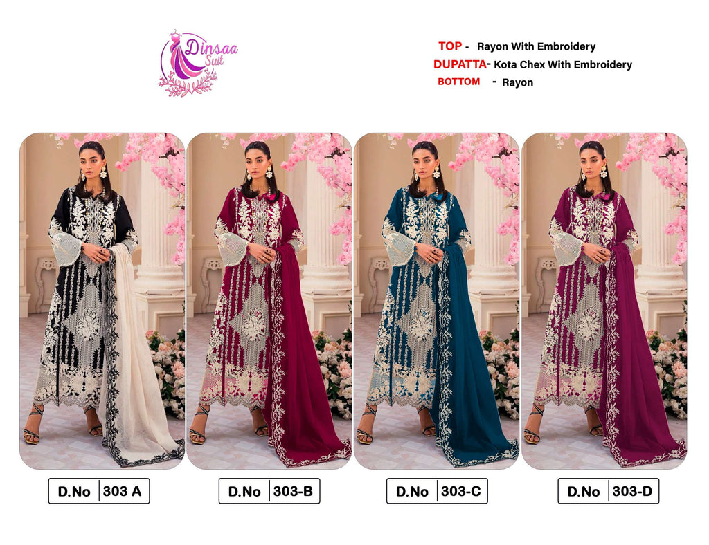 Dinsaa Suit Design No 303 Abcd Heavy Rayon Self Embroidery Suit