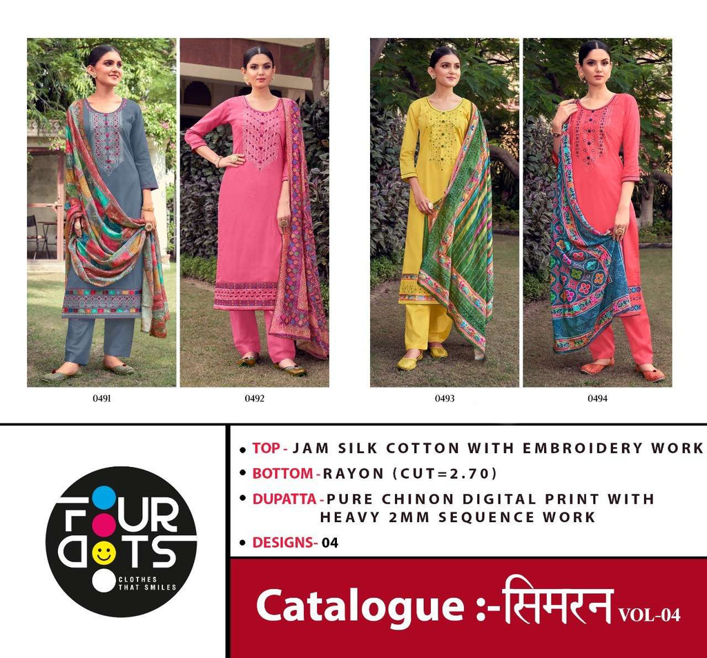 Four Dots Simran Jam Silk Vol 4 Jam Silk Cotton Embroidered Work Salwar Suit