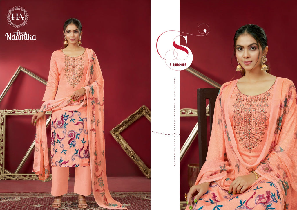 TOP: Pure Zam Digital Print with Fancy Embroidery & Swarovski Diamond Work BOTTOM: Pure Cotton Solid DUPPATTA: Pure Nazneen Chiffon Print |