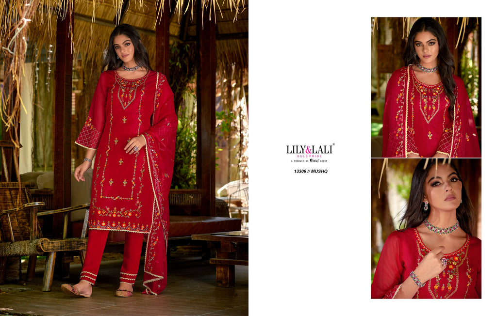 Lily And Lali Mushq Organza Handwork Designer Readymade Suits Collection