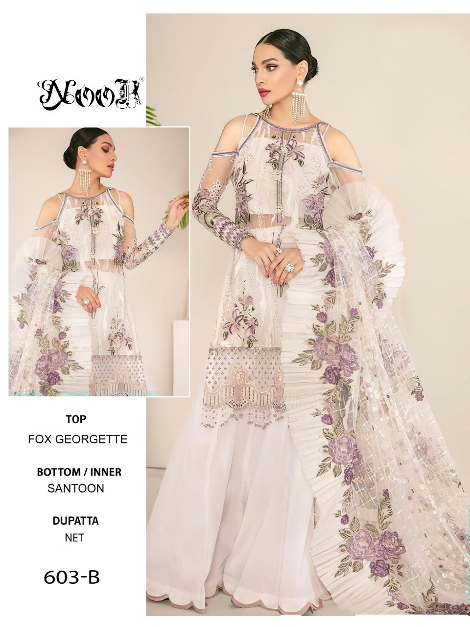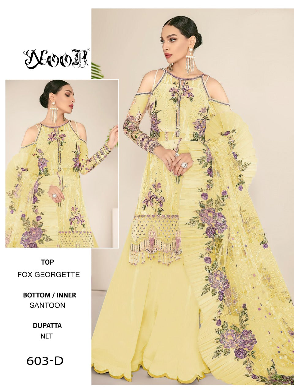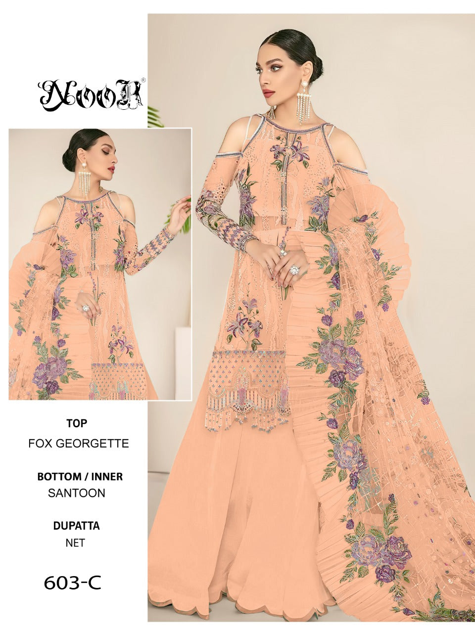Noor 603 Colours Faux Georegette With Self Embeoidery Work Pakistani Salwar Suit