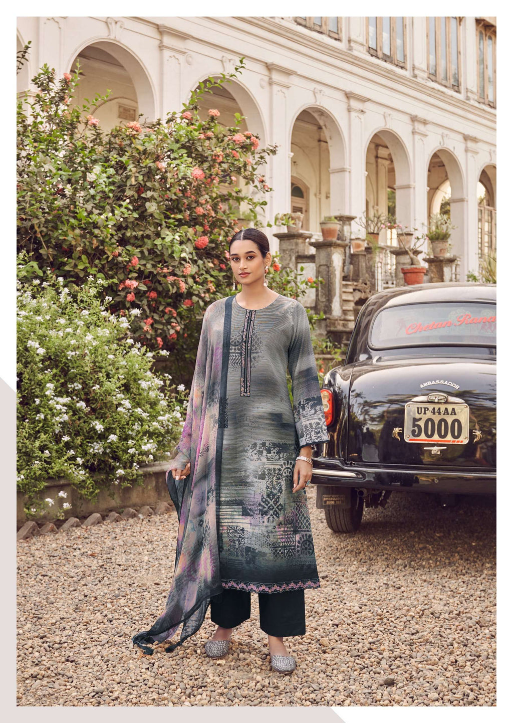top: pure cotton lilen with fency work with digital print bottom: pure cotton solid * *dupatta:*pure bember chiffon with digital print * designs: 8 * pcs rate: 1195/+gst |