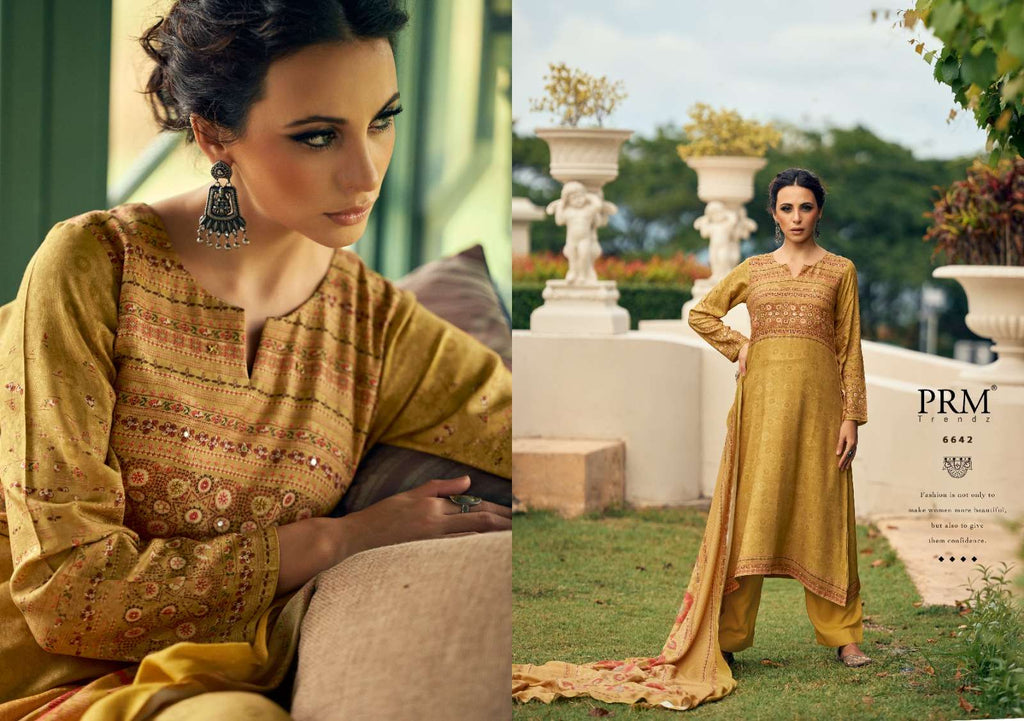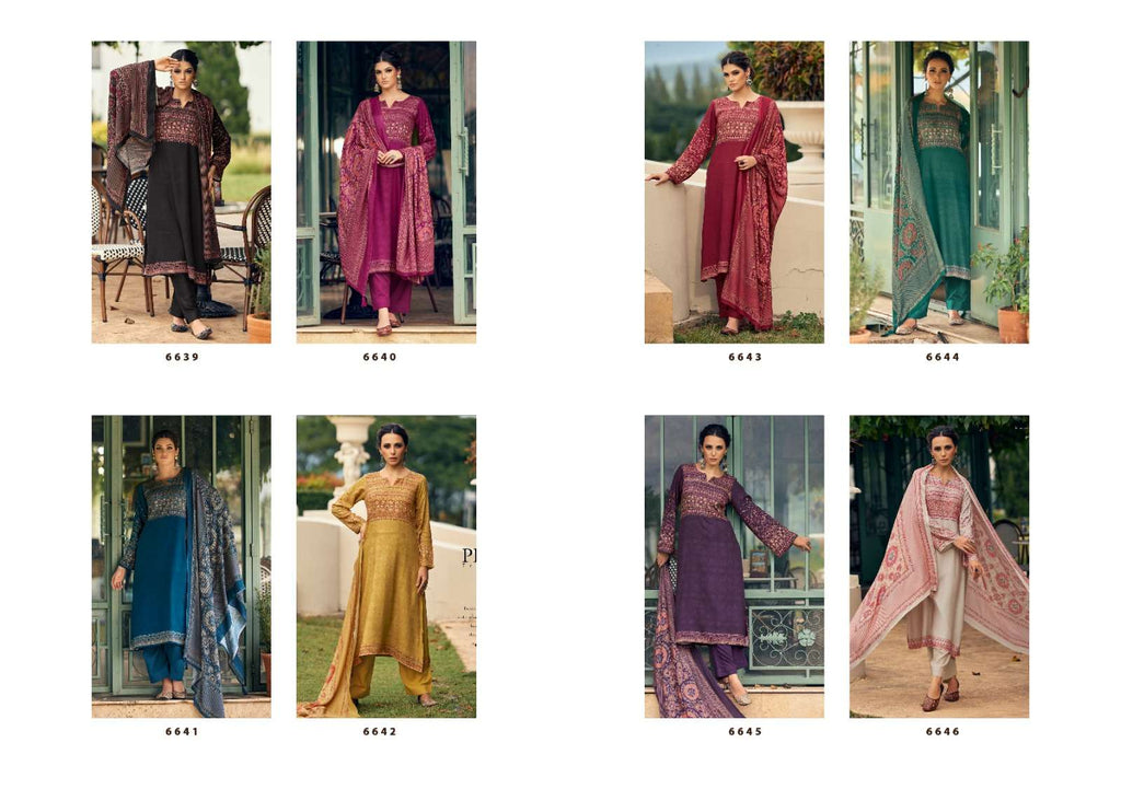 top: viscos pashmina digital print with fency hand work bottom: viscos pashmina solid * dupatta: pure viscos woollen showl with degital print designs: 8 * pcs rate: 1295/+gst |