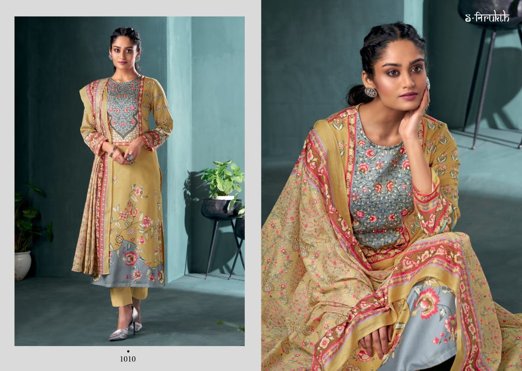 S Nirukth Nazakat Cotton Satin Print With Mirror Work Salwar Suit