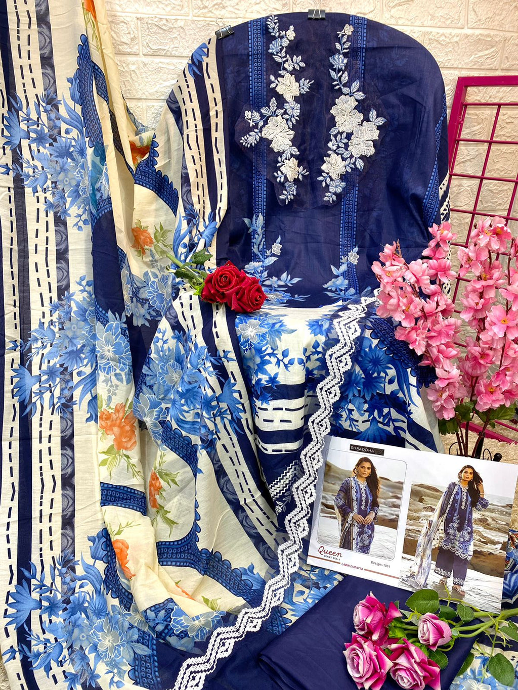 Top: LAWN COTTON PRINTED WITH HEAVY EMBROIDERY PATCH Dupp:CHIFFON PRINTED/ MAL MAL COTTON PRINTED DUPTA |