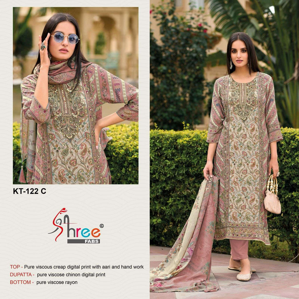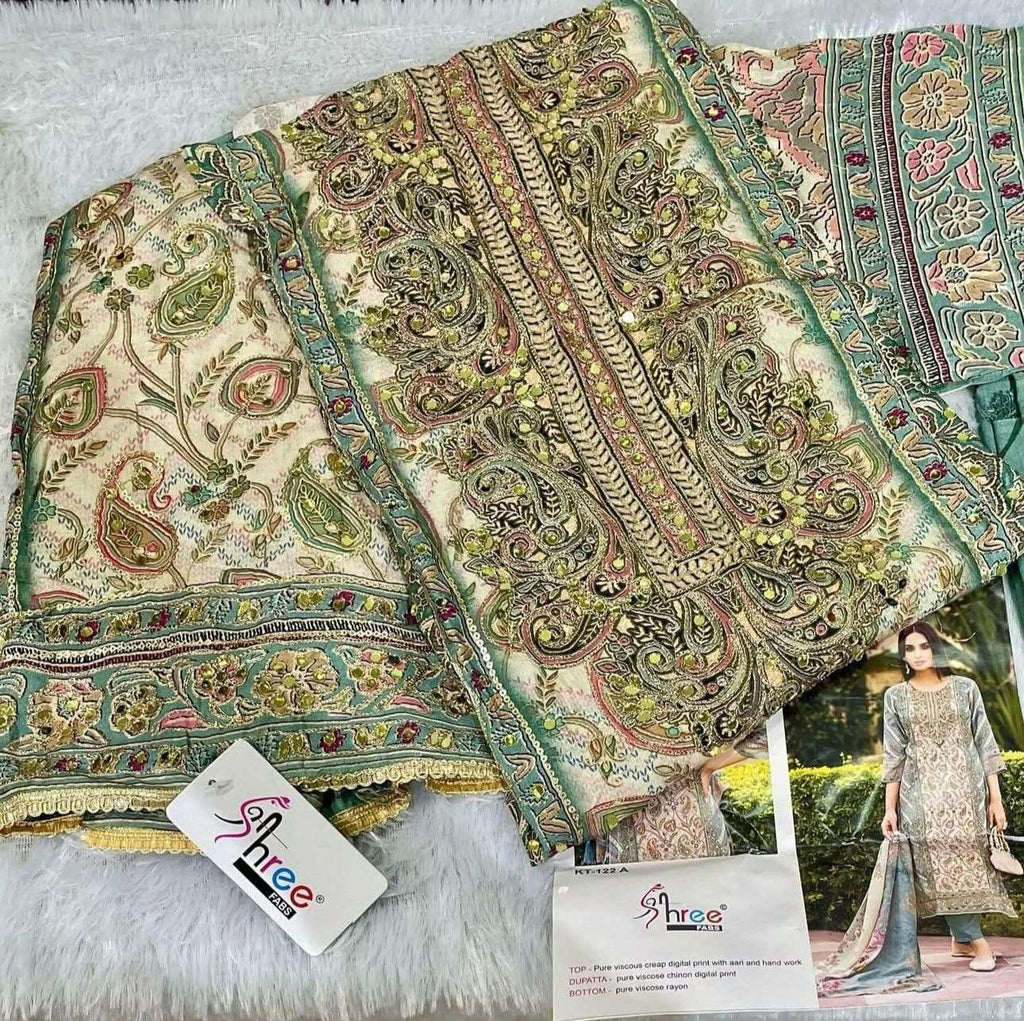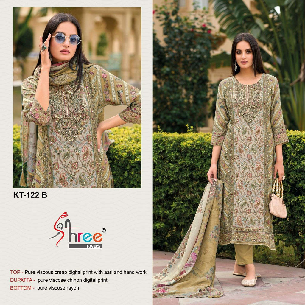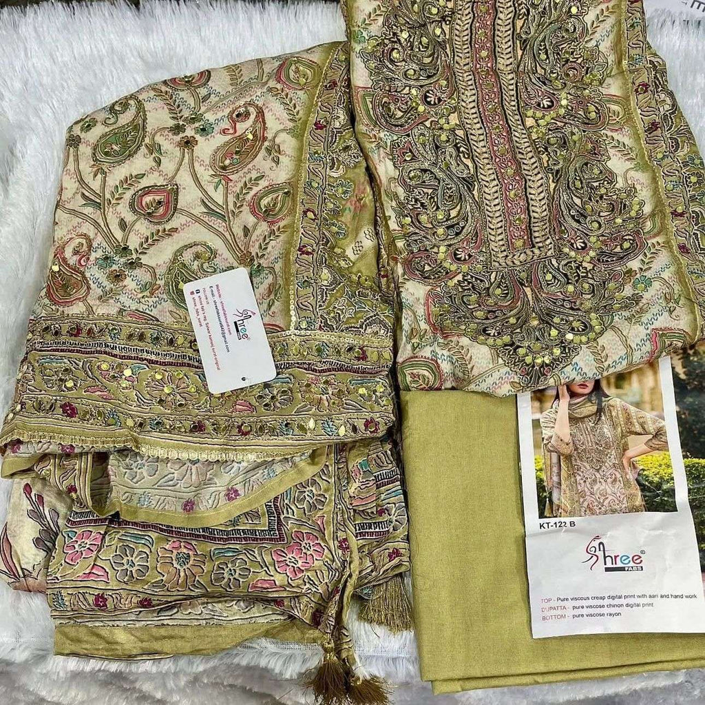 Shree Fabs Kt 122 Muslin Digital Print Handwork Pakistani Suits