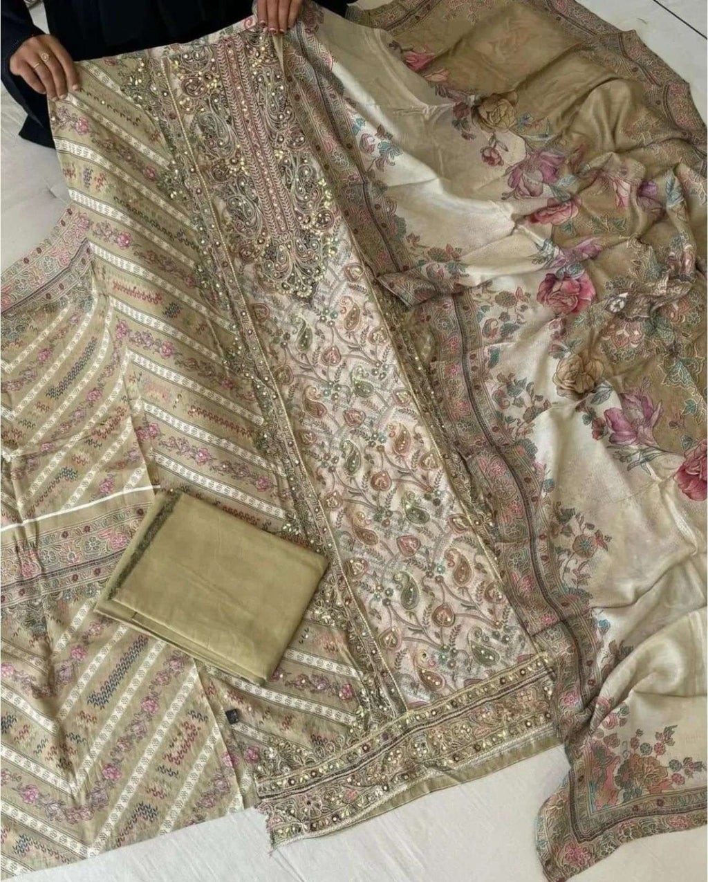 top pure viscous maslin digital print with aari and hand work