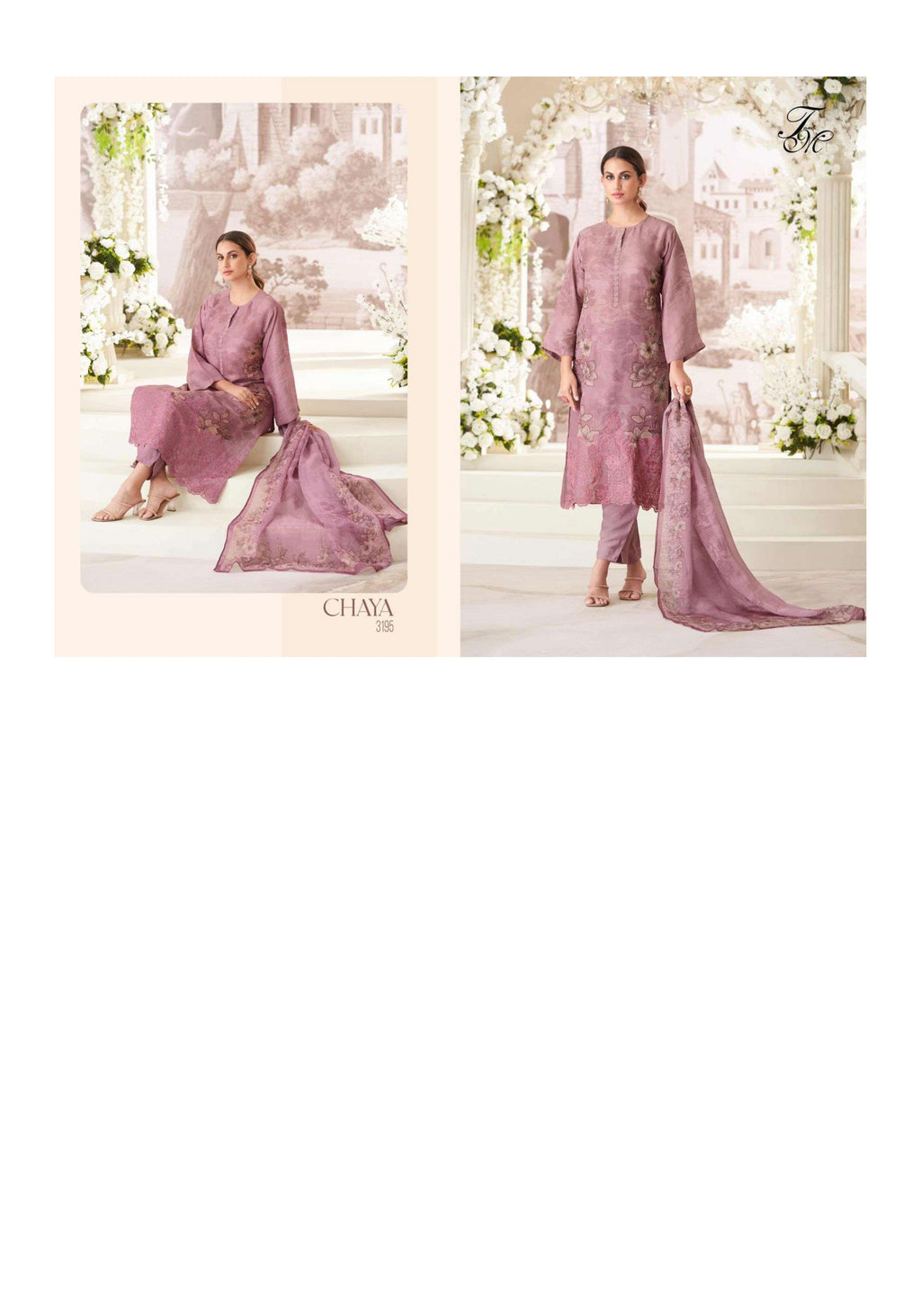 Top: simmer tissue digital print with handwork and treadle work daman organza silk dyed embroidery and threadle Bottom: muslin silk heavy Dupatta: organza rose digital printed dupatta |