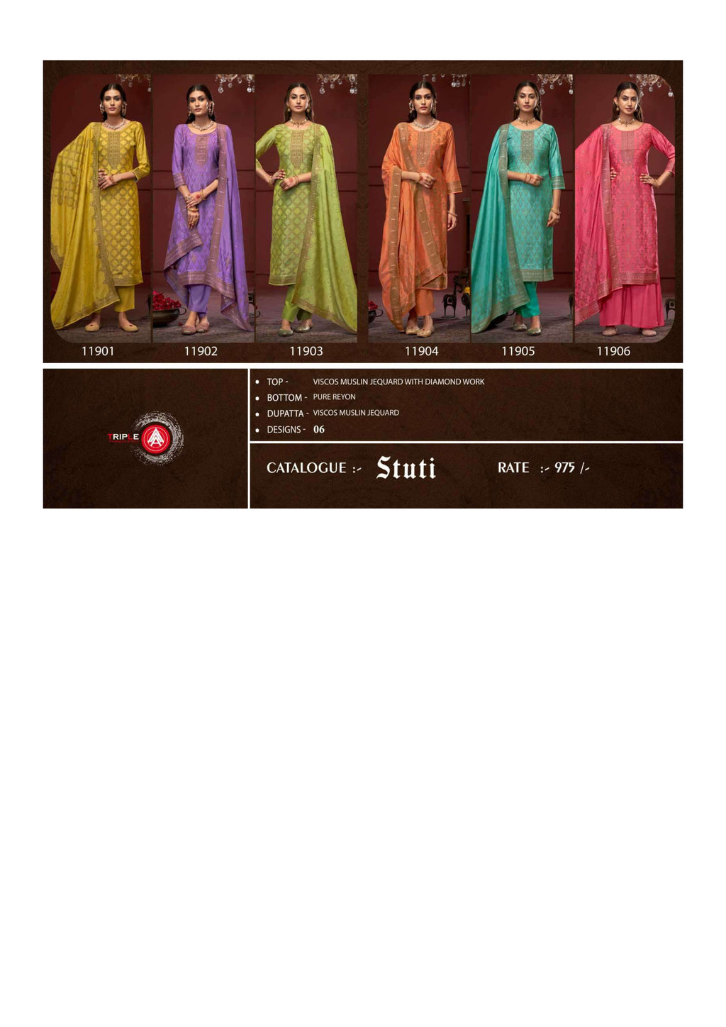Triple Aaa Stuti Muslin Jequard Diamond Work Designer Salwar Kameez