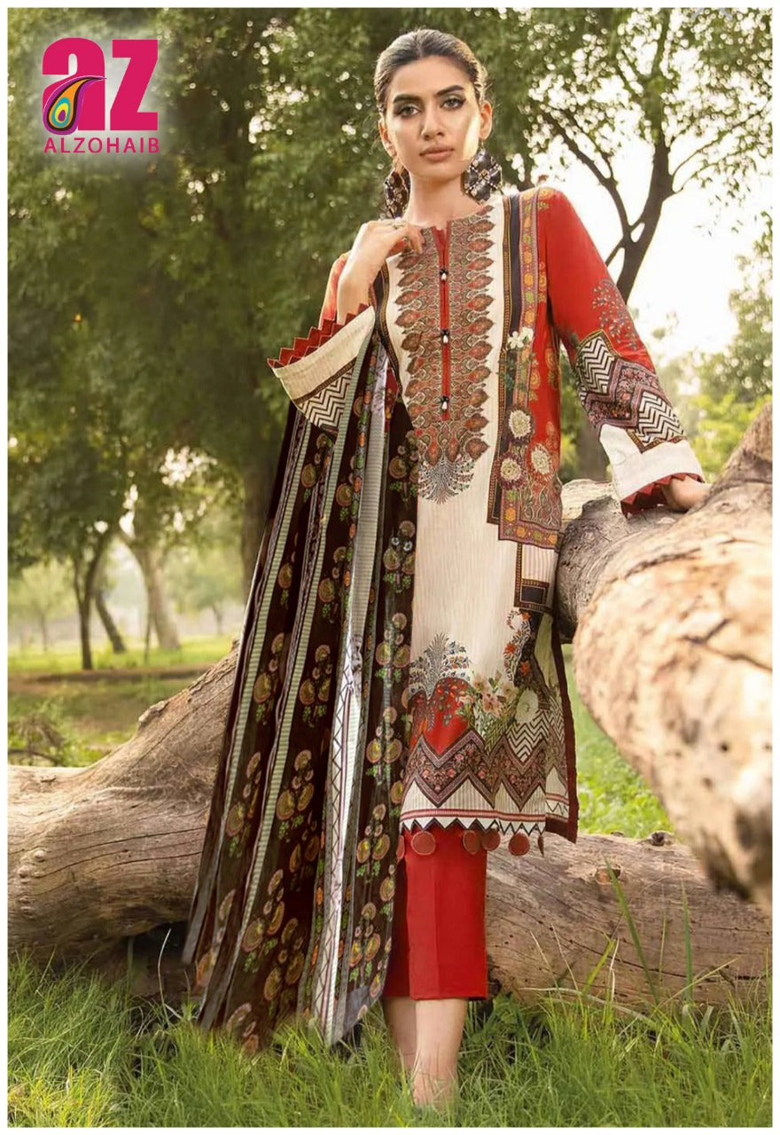 Pure Lawn Cotton Print. Top : Pure Lawn Cotton (Cut : 2.50 Mtr) Bottom : Pure Lawn Cotton Dyed (Cut : 2.00 Mtr) Dupatta: Pure Cotton Mal Mal ( Cut 2.25 Mtr ) |
