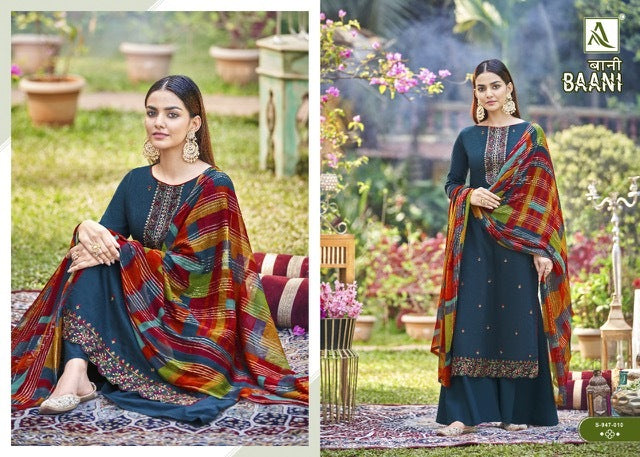 Fabric Details *Top: Pure Jam Negative Print With Fancy Embroidery & Swarovski Diamond Work* Bottom: Pure Cotton Solid *Dupatta: Pure Bemberg Chiffon Box Pallu Print Dup* |