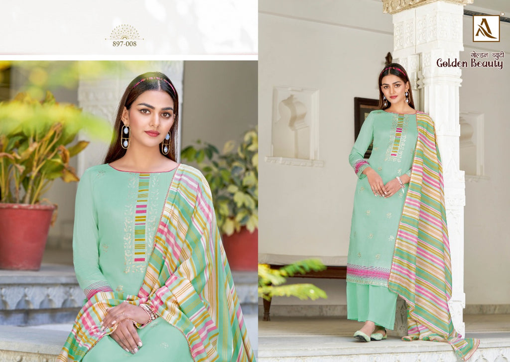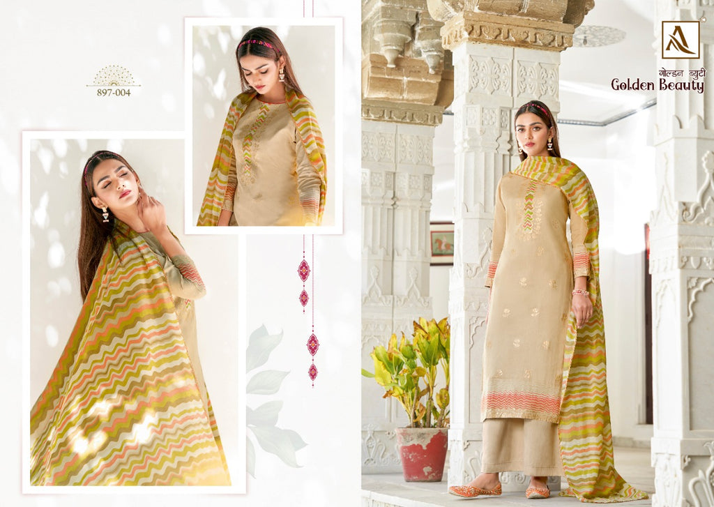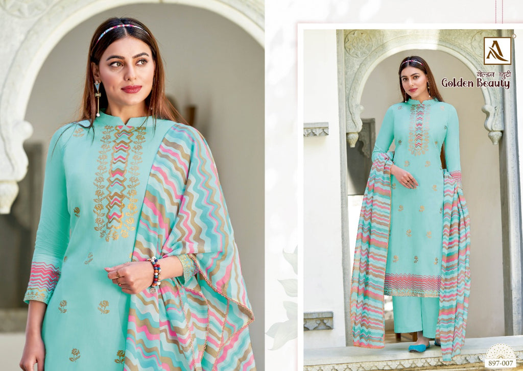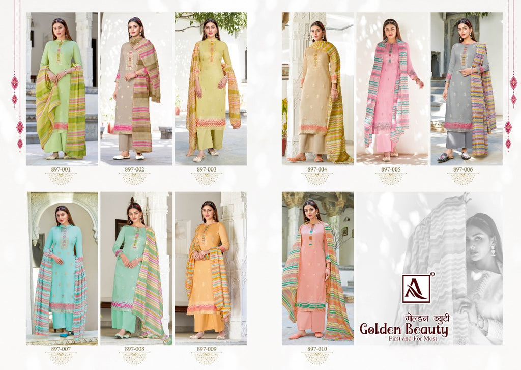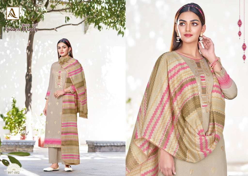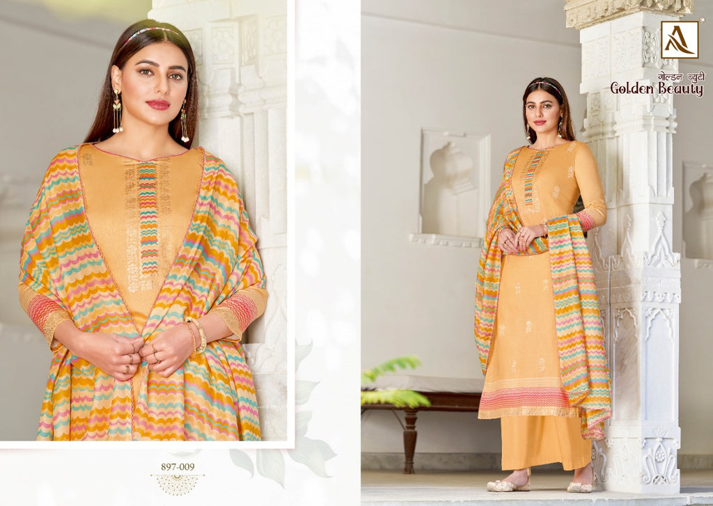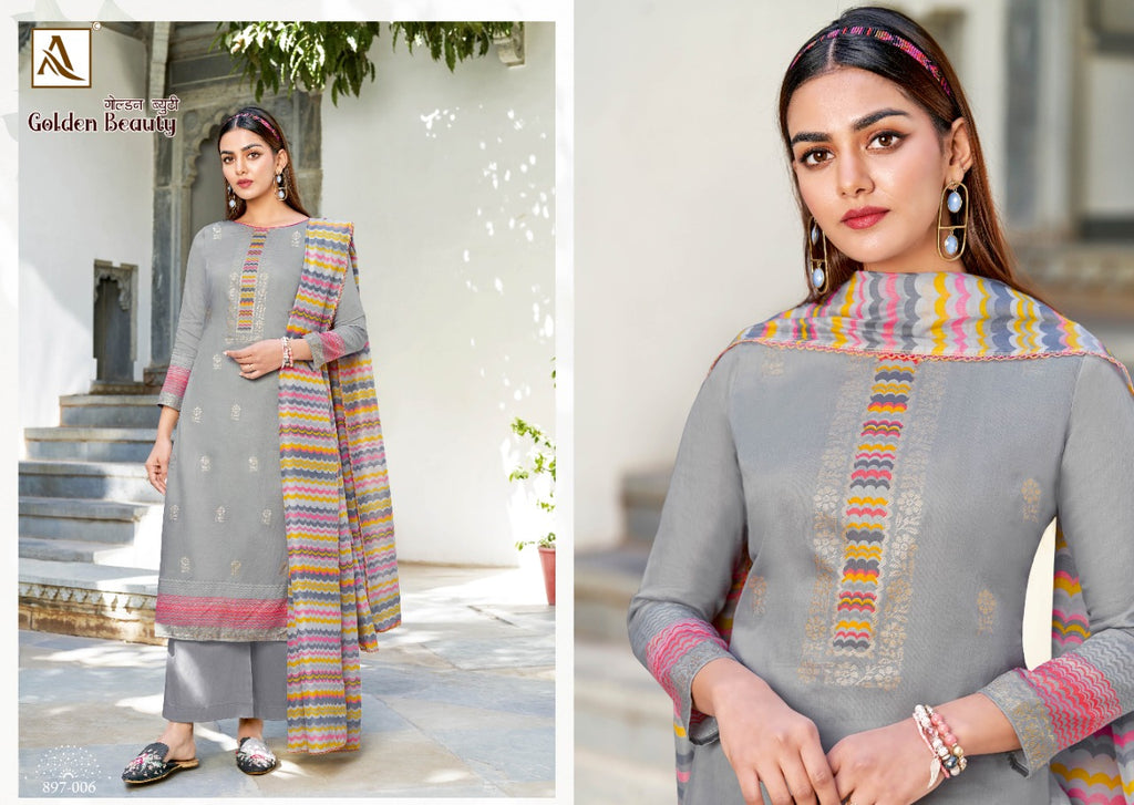 Alok Suits Golden Beauty Jam Cotton Party Wear Salwar Kameez With Fancy Gold Foil Prints