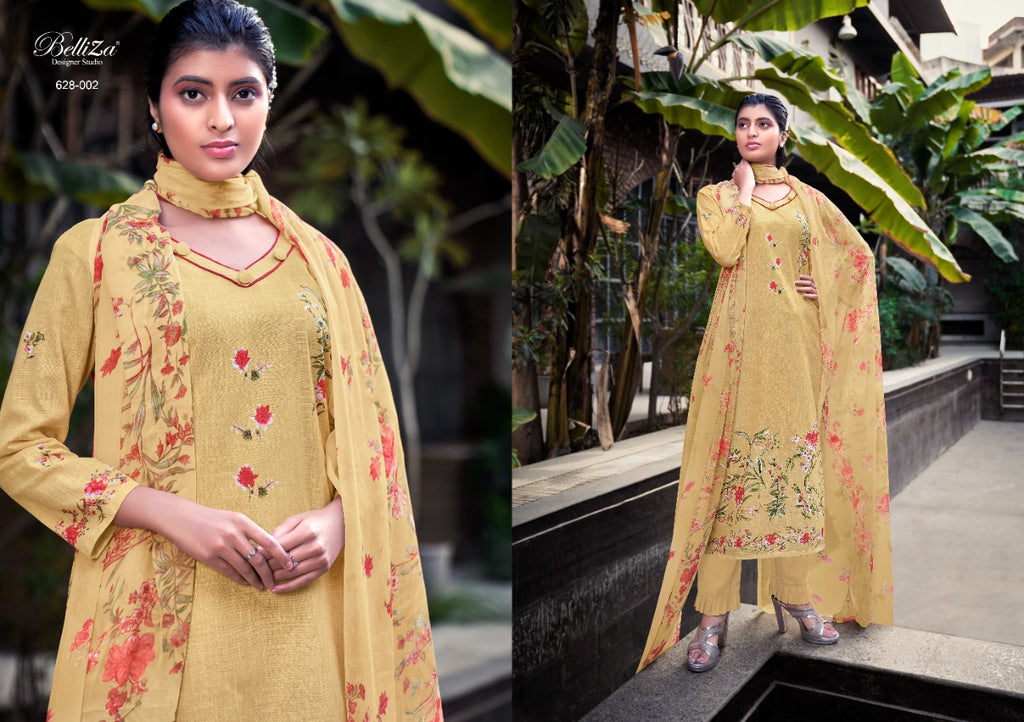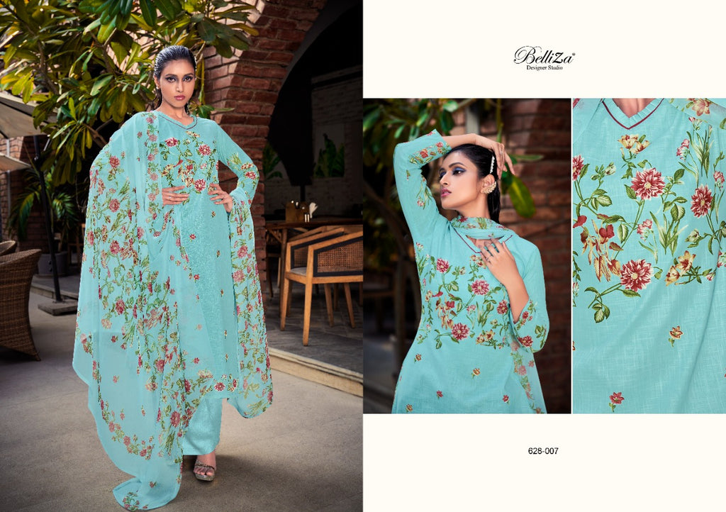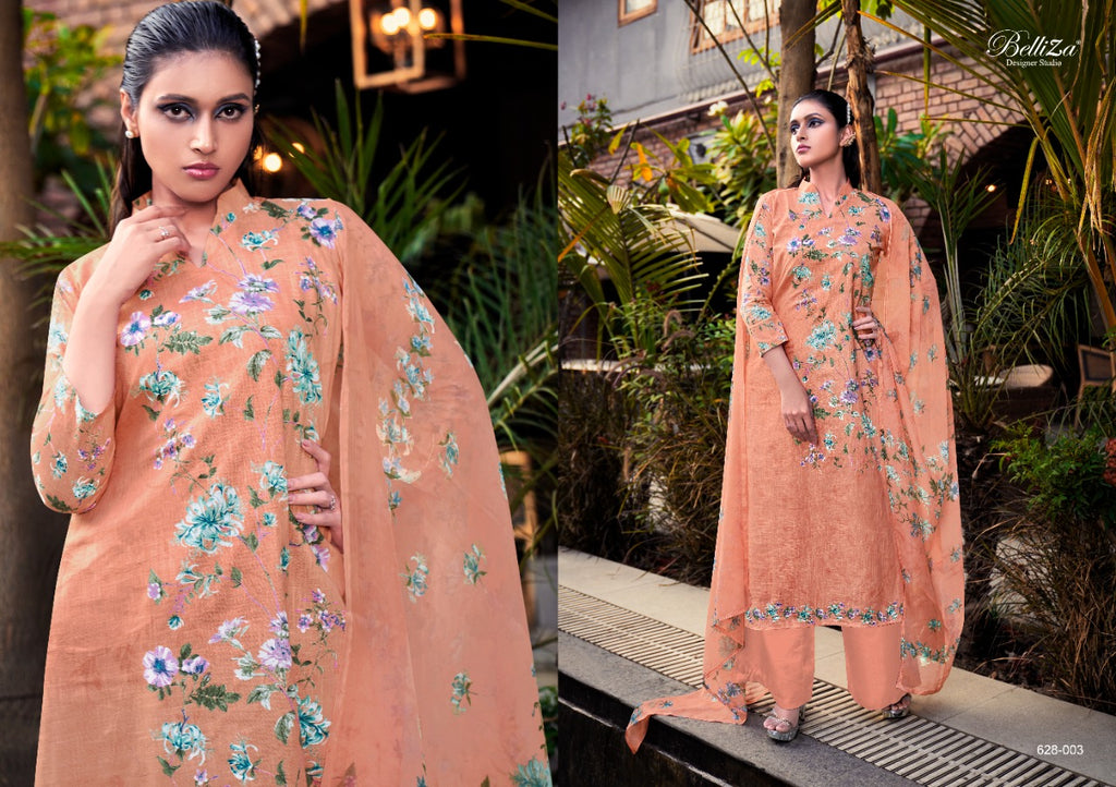 Fabric Details : Top: 100% Pure Cotton Linen With Digital Print (2.50 Mtrs) Dupatta: Pure Nazneen Chiffon. (2.30 Mtr) Bottom: Pure Cotton Salwar. (3 Mtrs) |