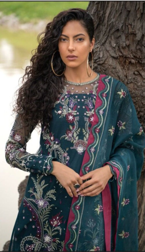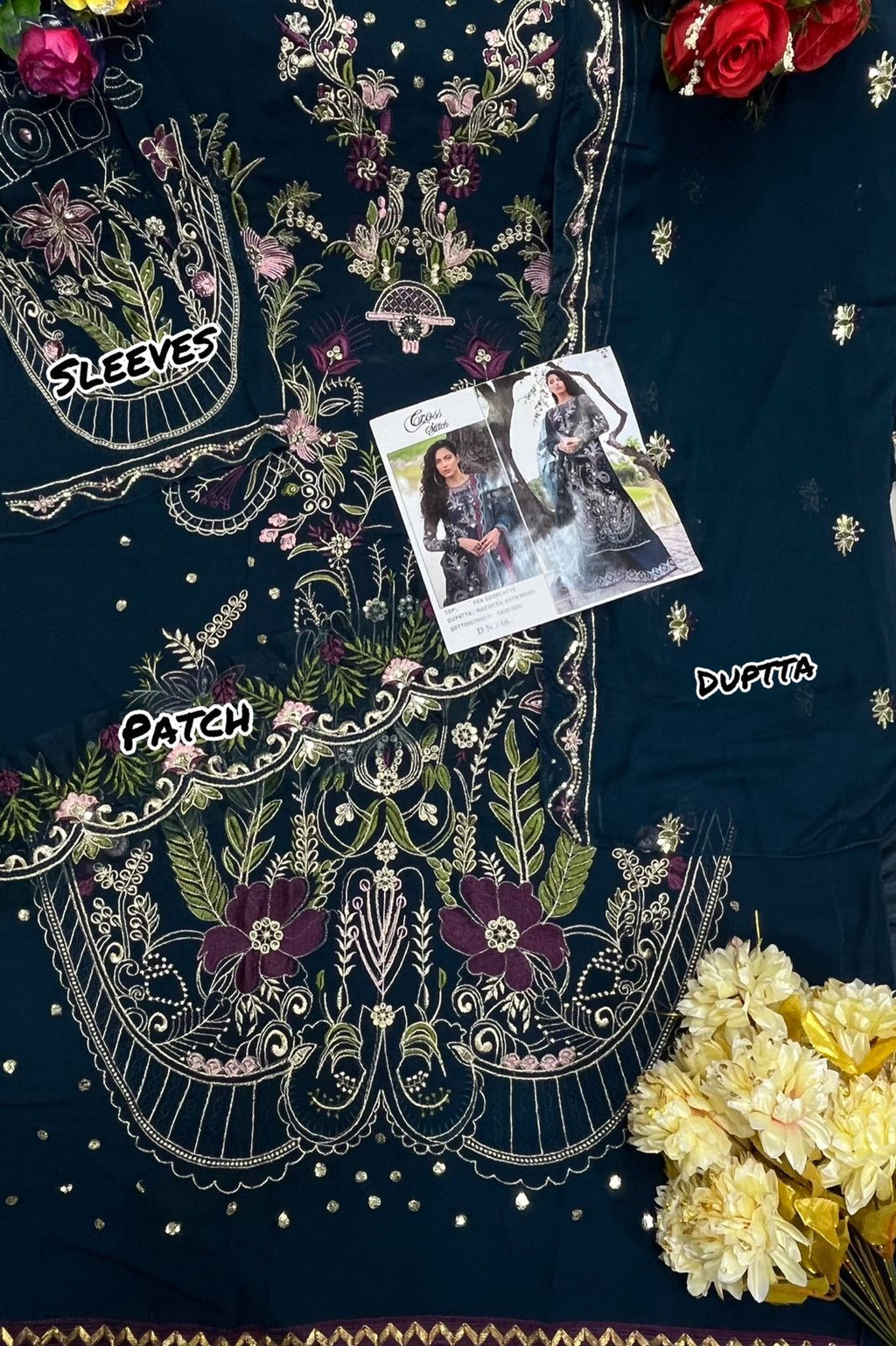 Fabric Details : Top : Fox Georgette With Heavy Embroidery Work Bottom : Santoon With Embroidered Patch Inner : Santoon Dupatta : Nazmin With Heavy Embroidery |
