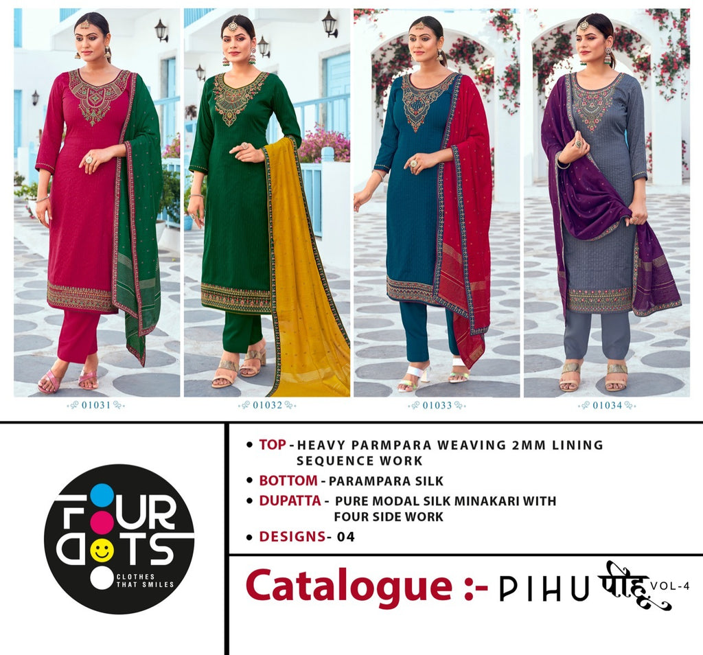 Fabric Details Top:- Heavy Parampara Weaving 2MM Lining Sequence Work Bottom :- Parampara Silk Dupatta:- Pure Modal Silk Minakari With Four Side Work |