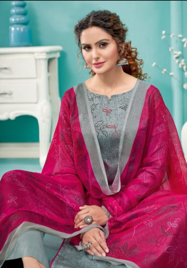 Fabric Details: Top : Jam Digital Summer Print Bottom : Pure Cotton Solid Dupatta : Pure Nazneen Chiffon Print Fancy Dup |