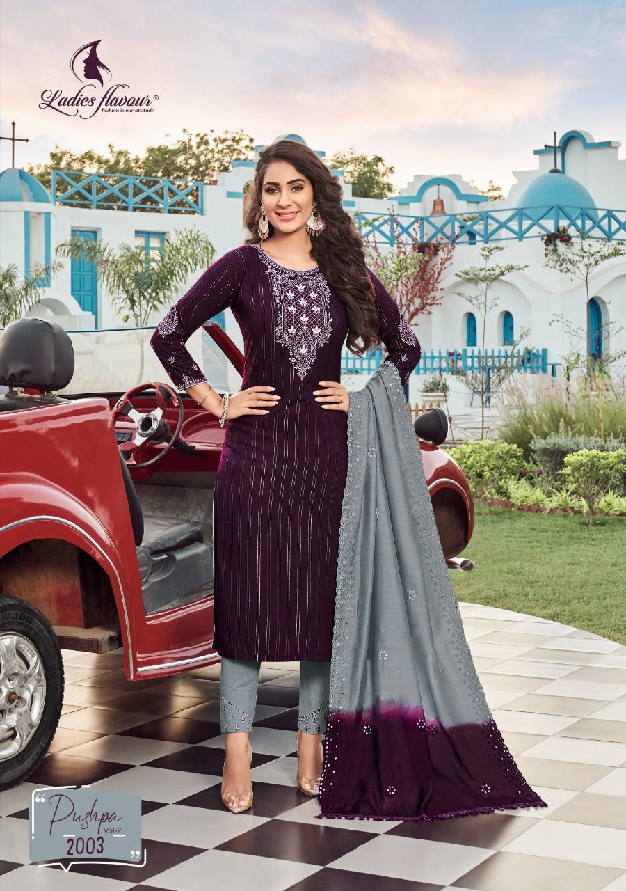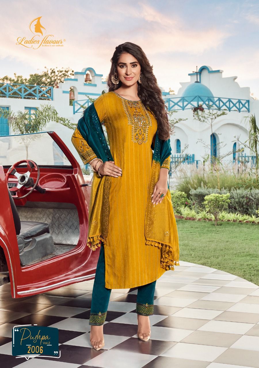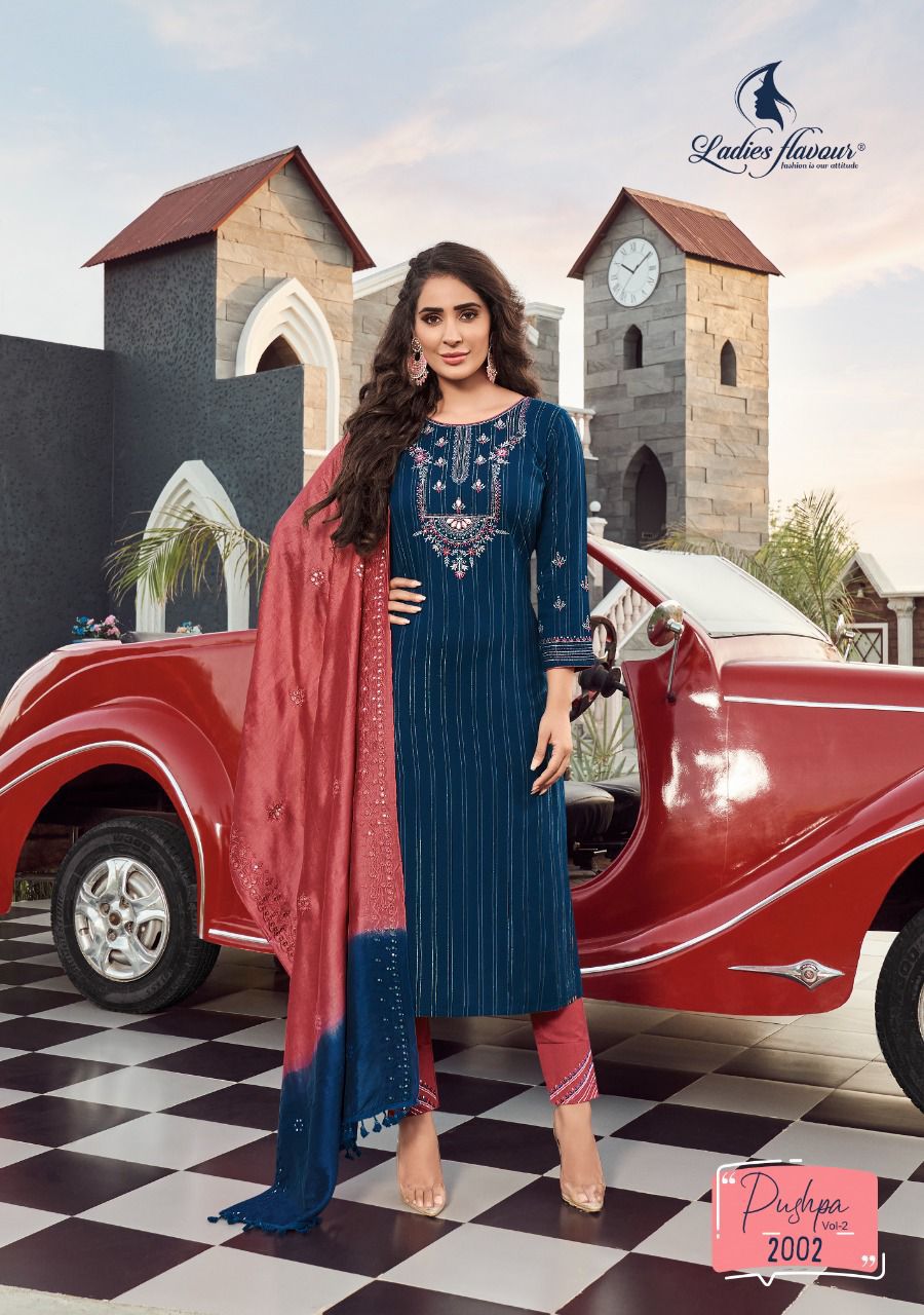 Ladies Flavour Pushpa Vol 2 Rayon Embroidered Party Wear Ready Made Salwar Suits