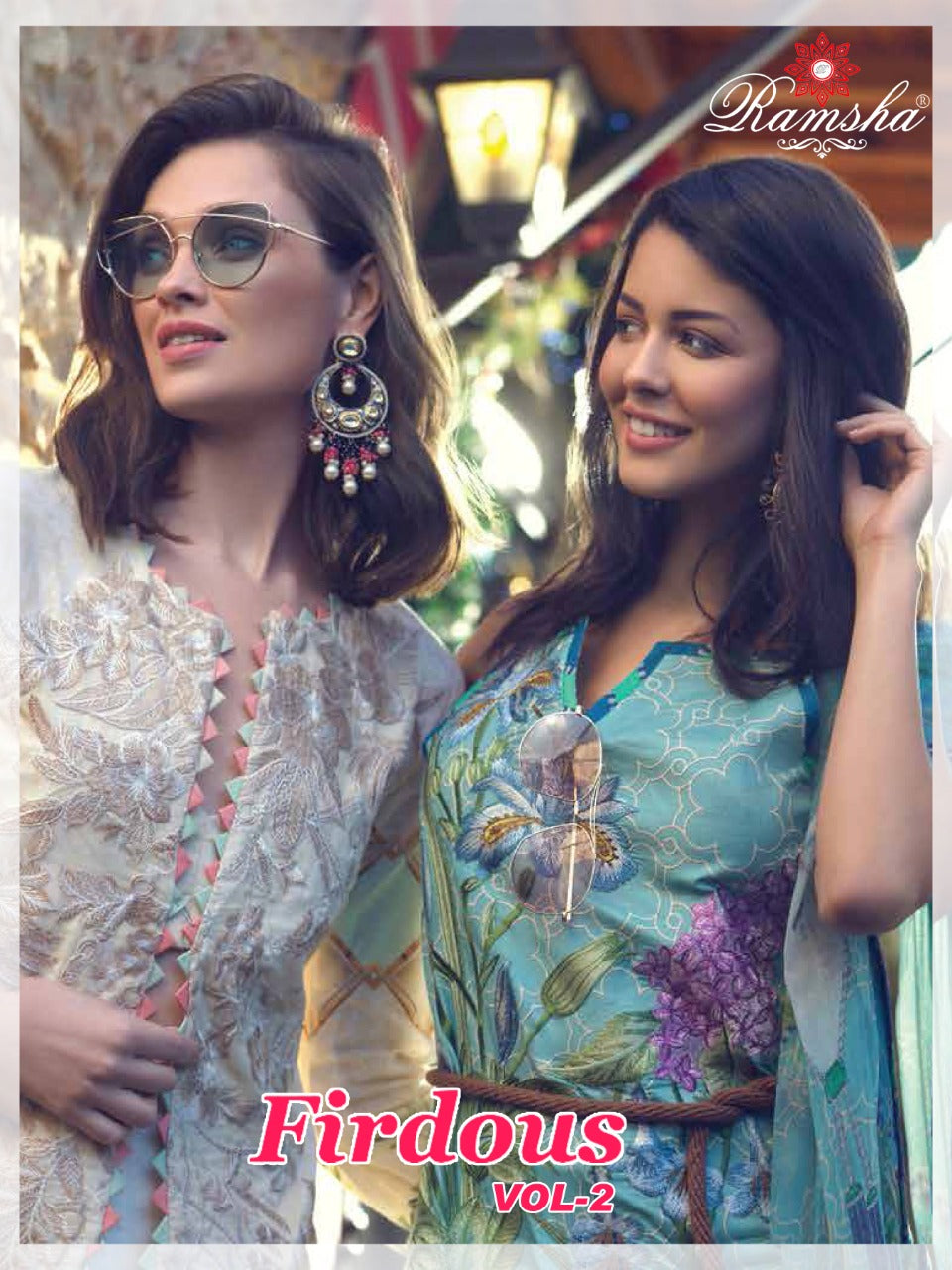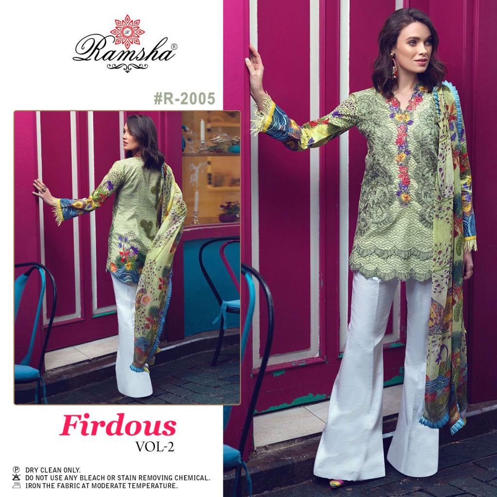 Ramsha Firdous Vol 2 Cambric Cotton Embroidered Pakistani Style Festive Wear Salwar Suits With Fancy Prints