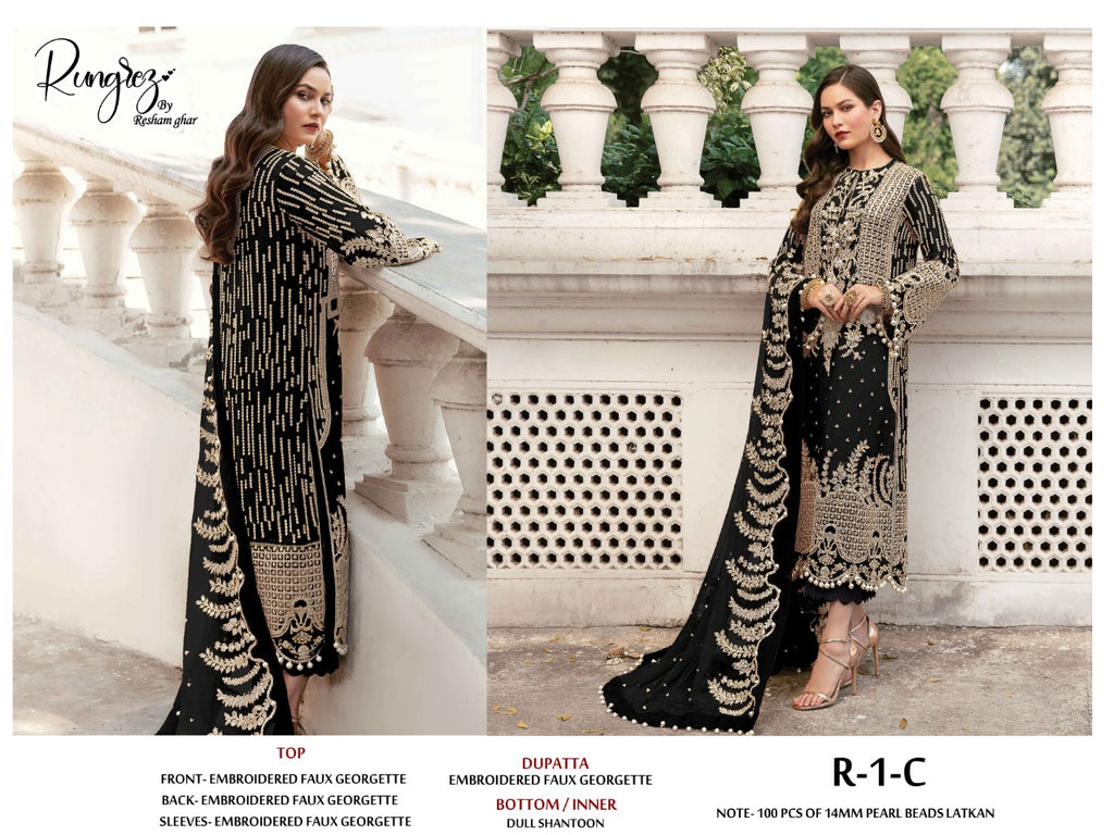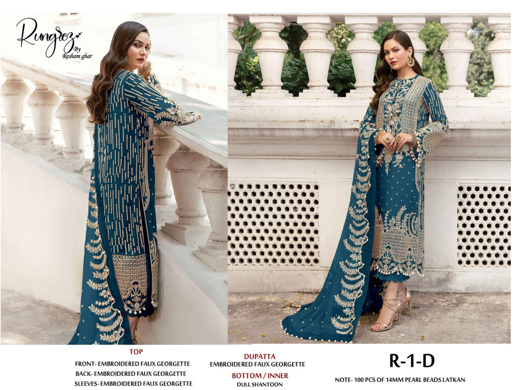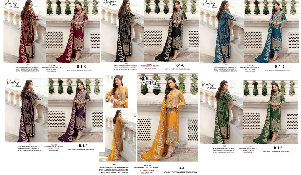 Fabric Details : Front & Back With Heavy Work Top : Georgette With Heavy Embroidery Sleeves Width : 0.50 M Dupatta : Georgette With Heavy Embroidery Bottom / Inner : Dull Santoon ( 4.5 M) |