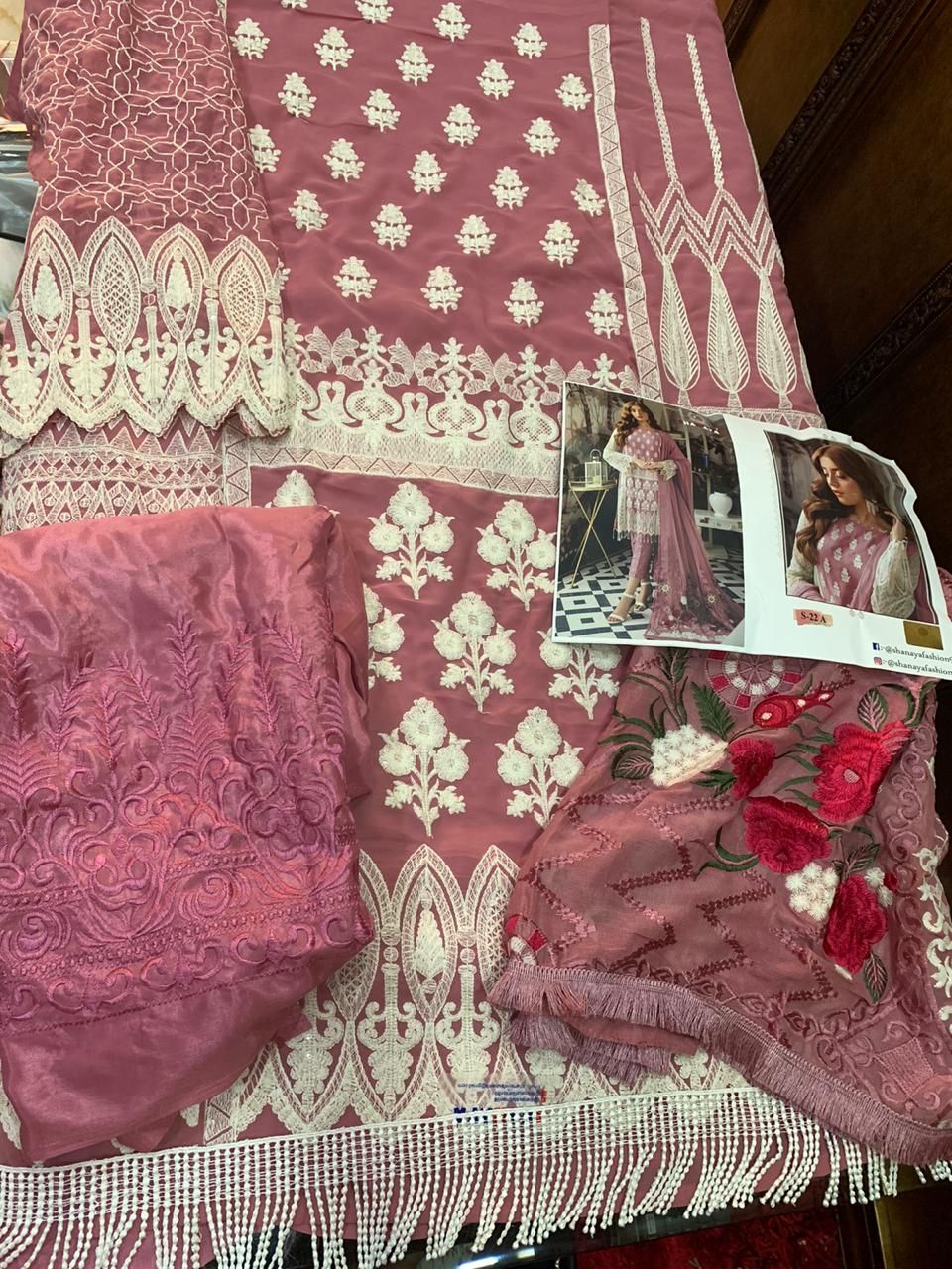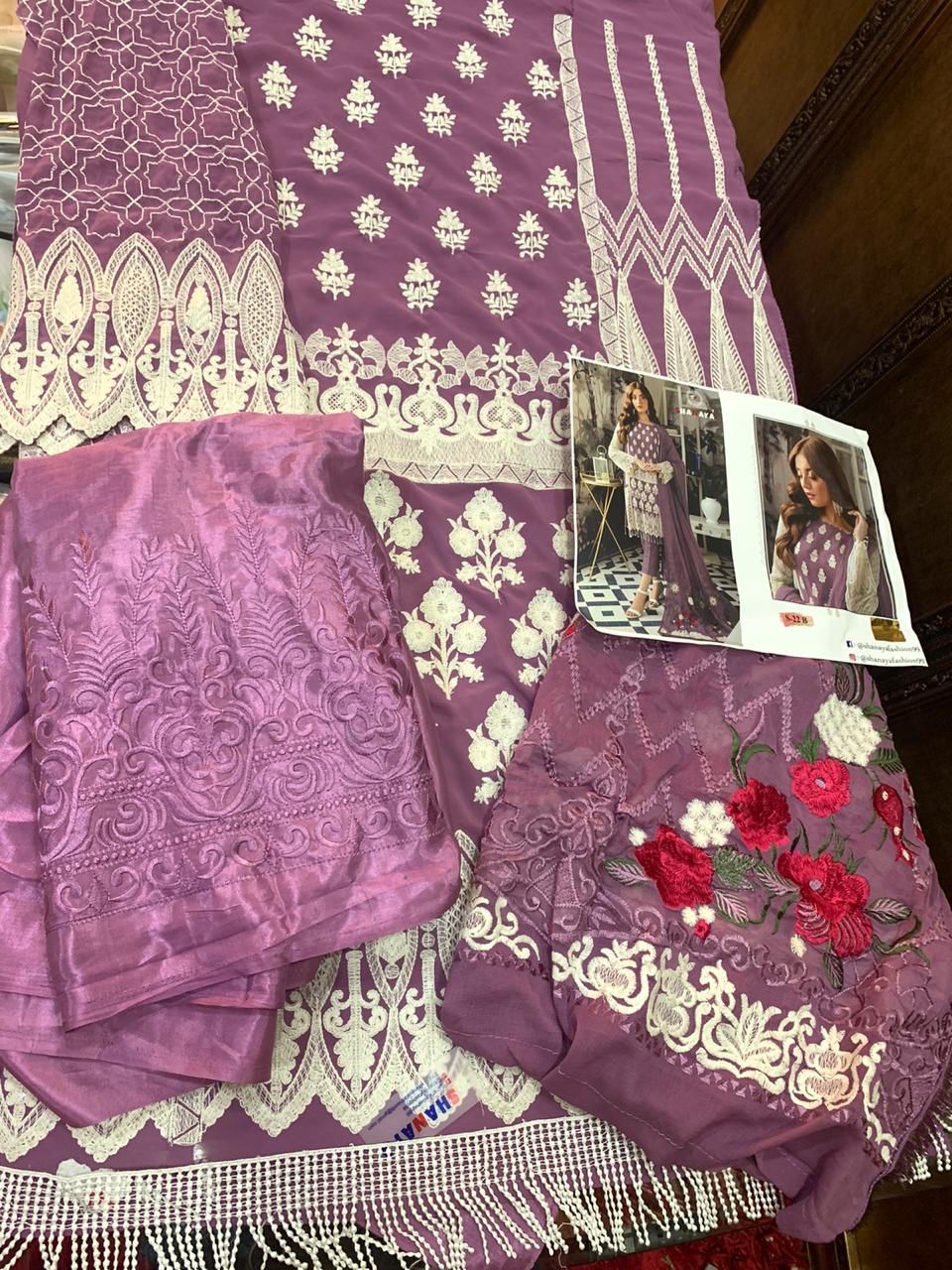 Fabric Details Top : Heavy Fox Georgette Inner :- Santoon Bottom :- Santoon With Self Work Dupatta : Heavy Nazmin |