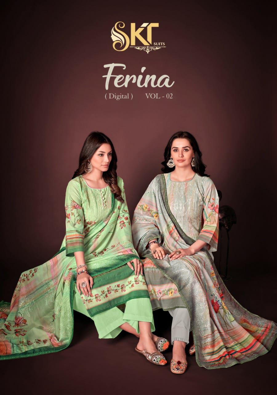 Skt Suits Ferina Vol 2 Cambric Cotton Digital Printed With Embroidery Party Wear Salwar Suits