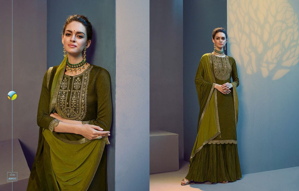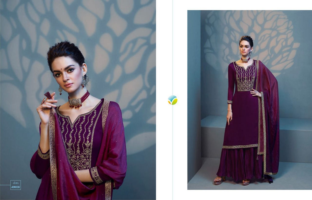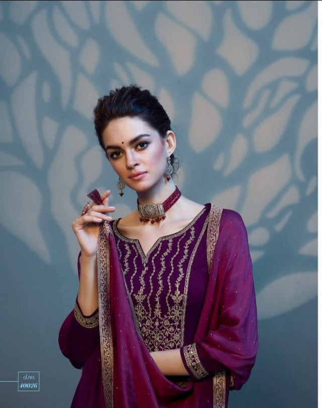 **Fabric Details* **Silk Georgette With Inner Top With Silk Georgette Sharara & Chinon Dupatta With Diamond Work K & 4 Side Jacquard Border On Dupatta * *Size : M TO 3XL** |