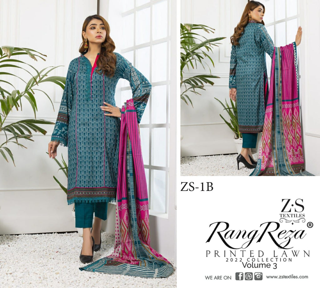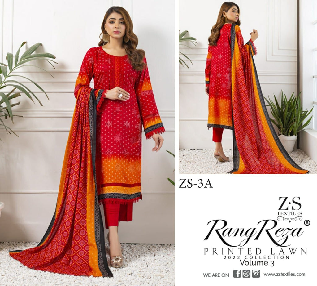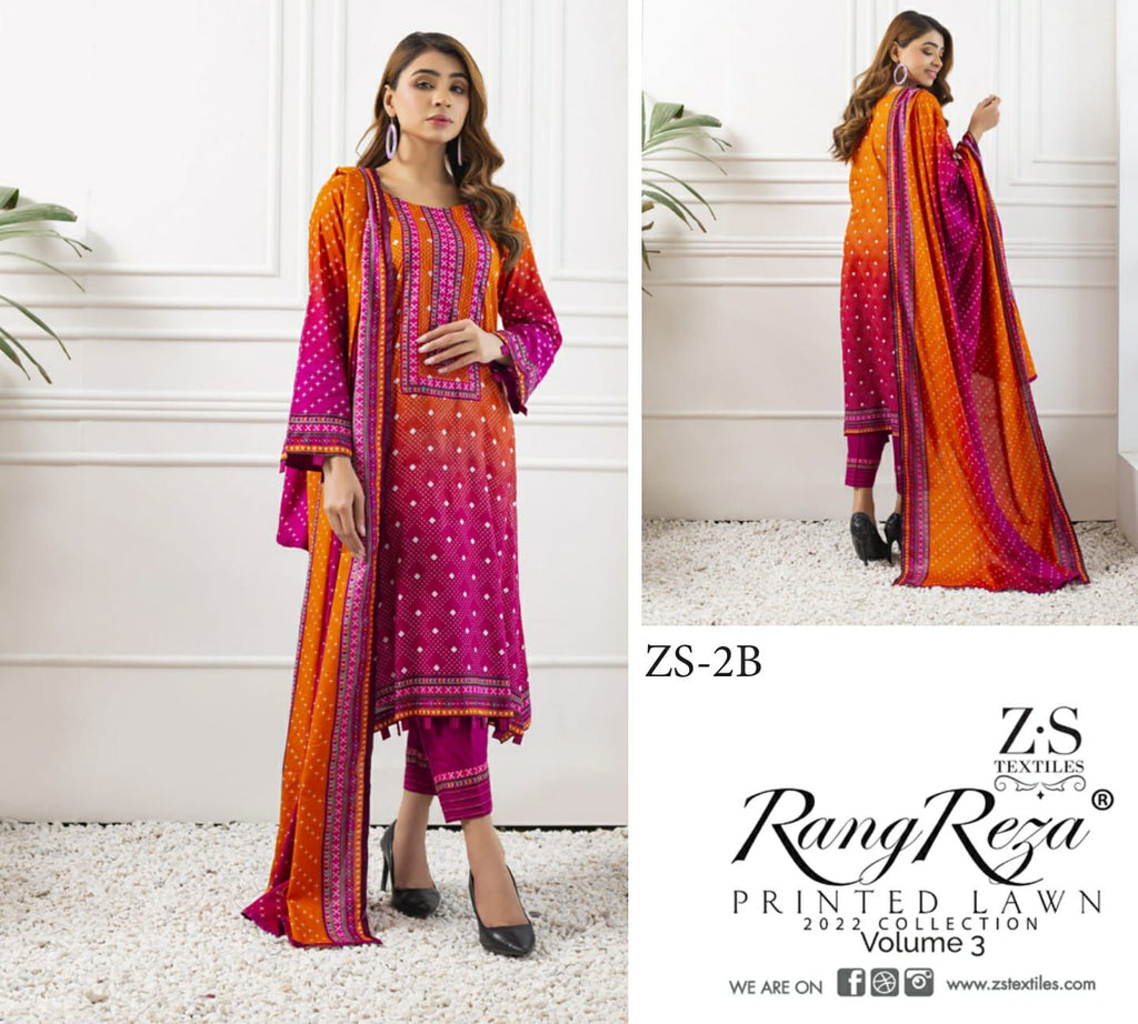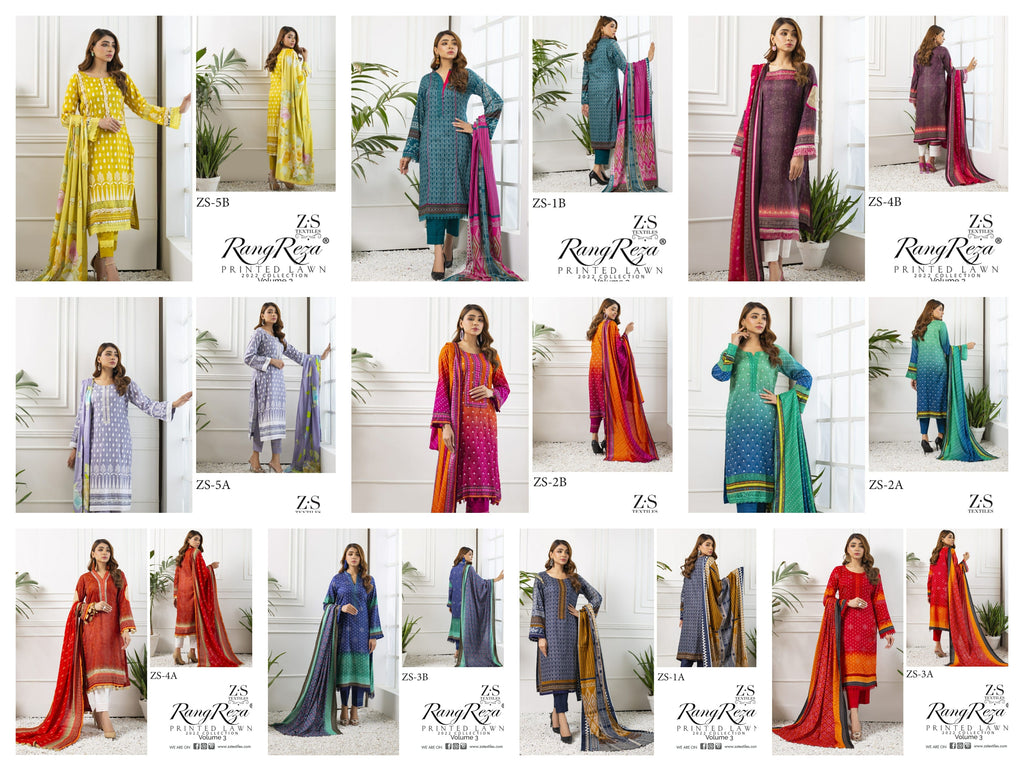 Z S Textile Rangreez Printed Lawn Cotton Vol 3 Pakistani Style Party Wear Salwar Kameez