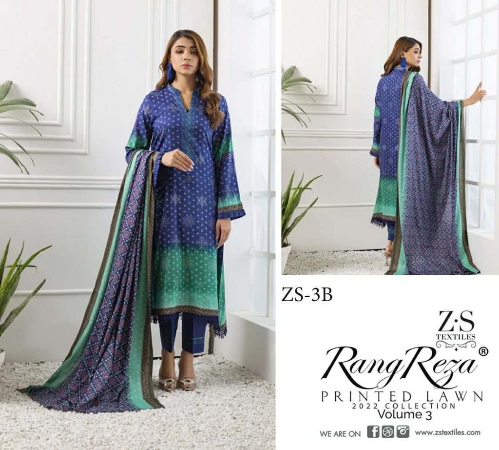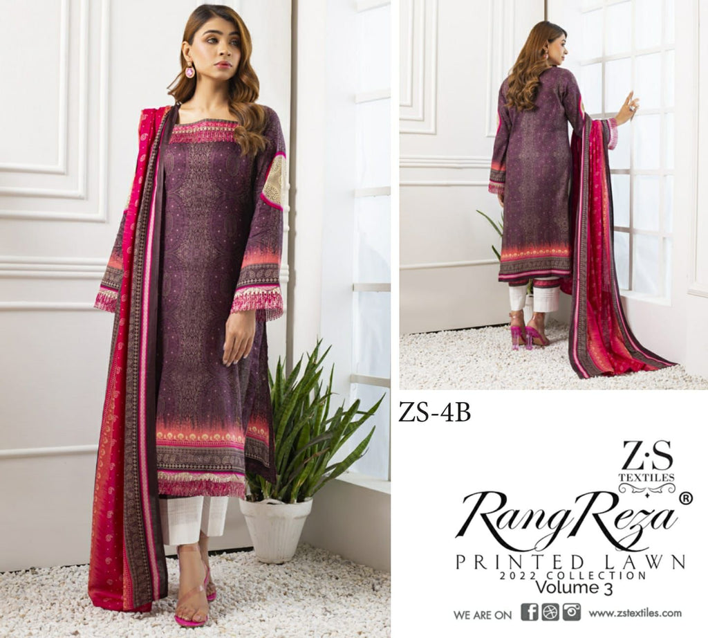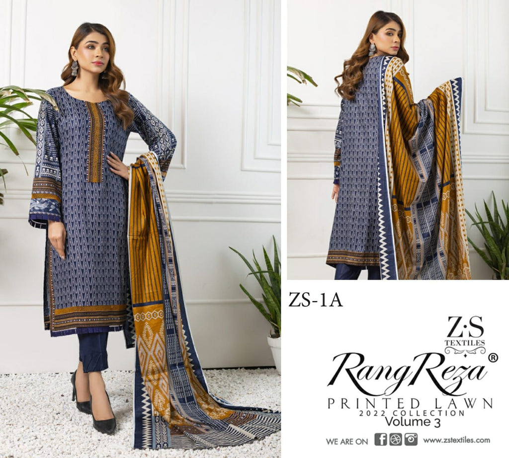 Z S Textile Rangreez Printed Lawn Cotton Vol 3 Pakistani Style Party Wear Salwar Kameez