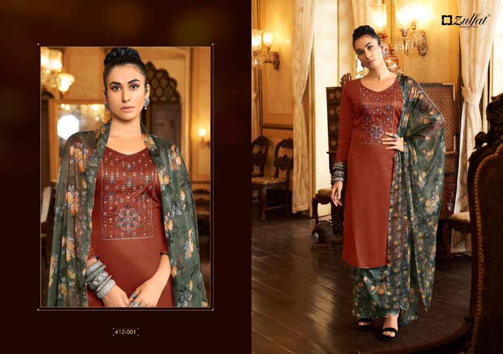 Zulfat Designer Suits Damini Jam Cotton Party Wear Embroidered Salwar Suits