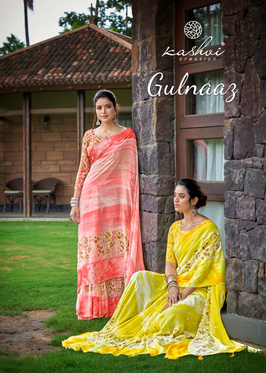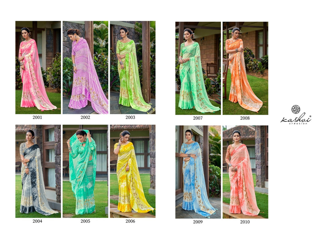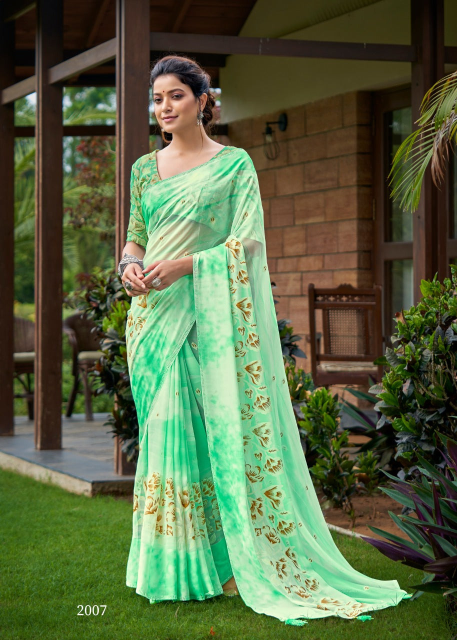 Fabric : Georgette Satin Border With Foil Prints , Fancy Blouse & Swarovski Work |