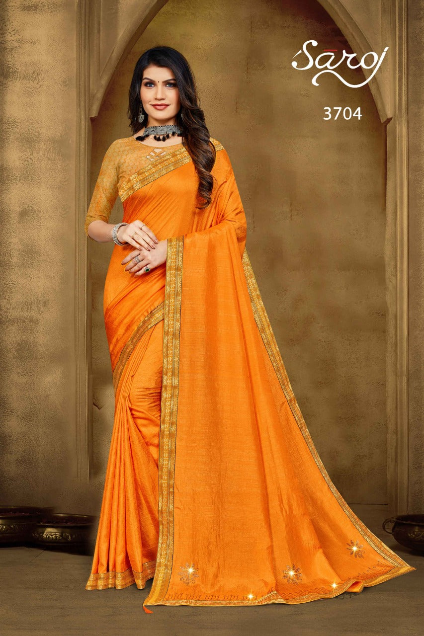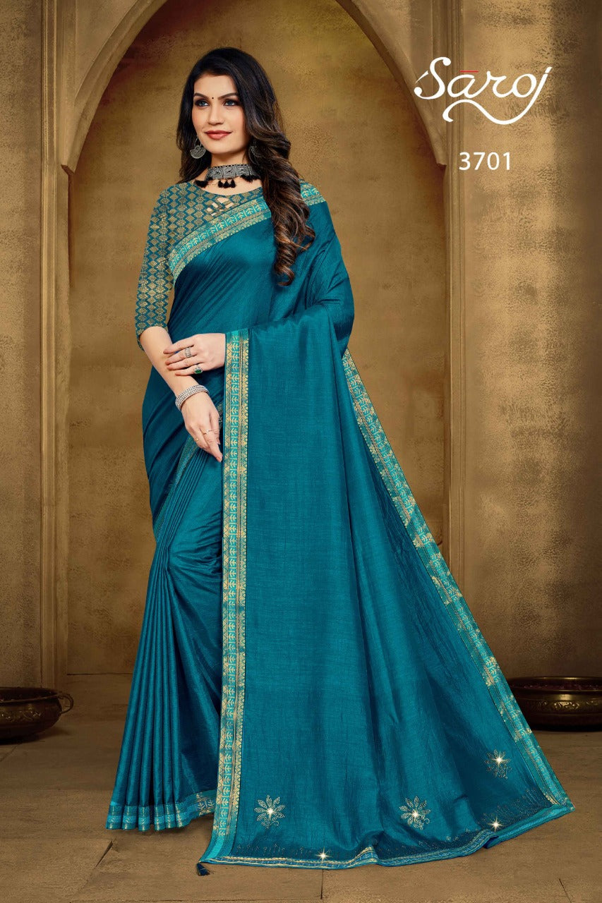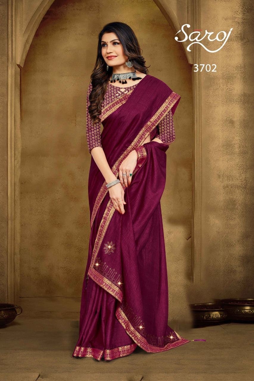 Fabric: Soft Vichitra Silk With Swarovski & Lace. Blouse: Brocade Silk With Lace. |