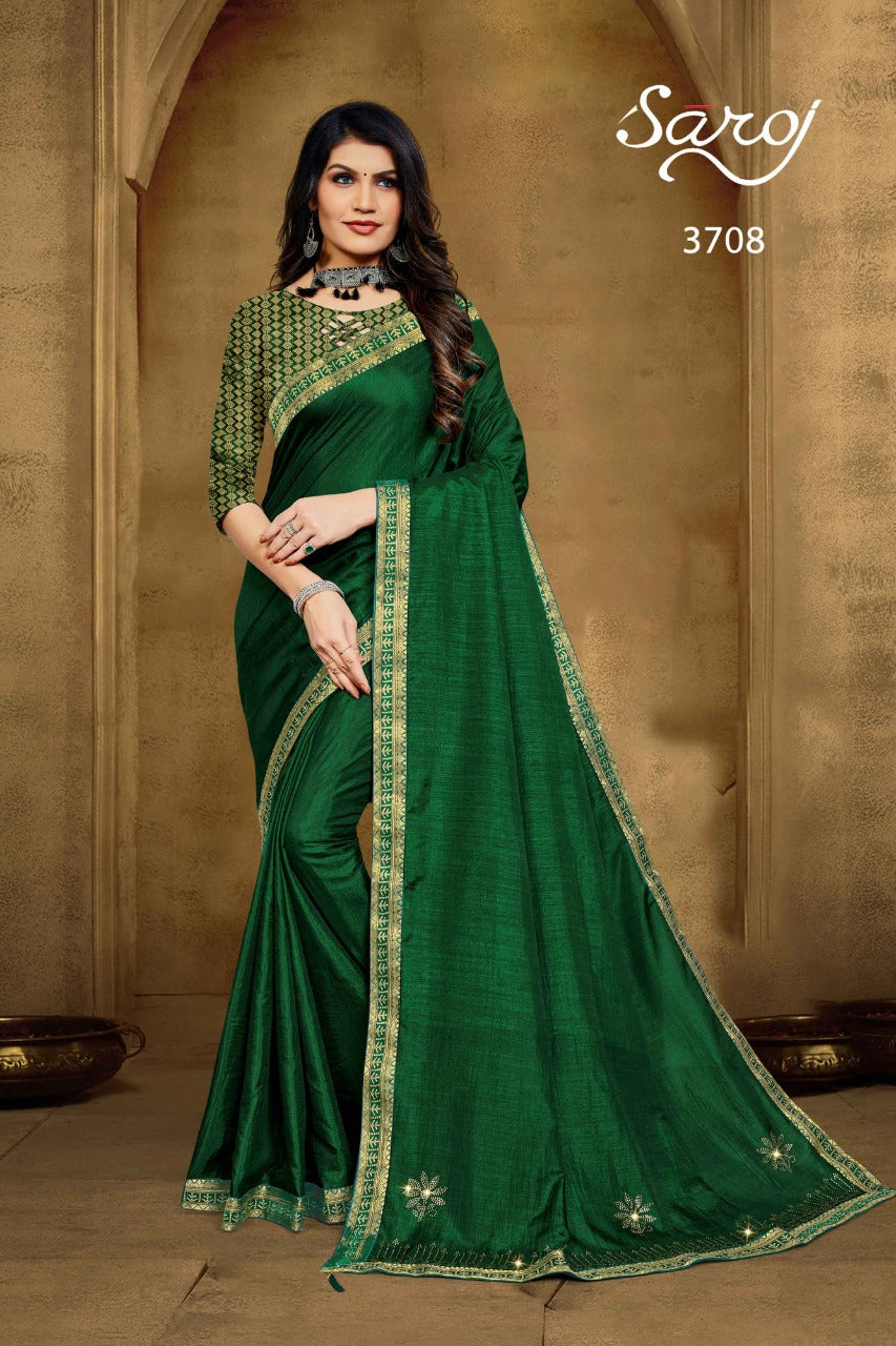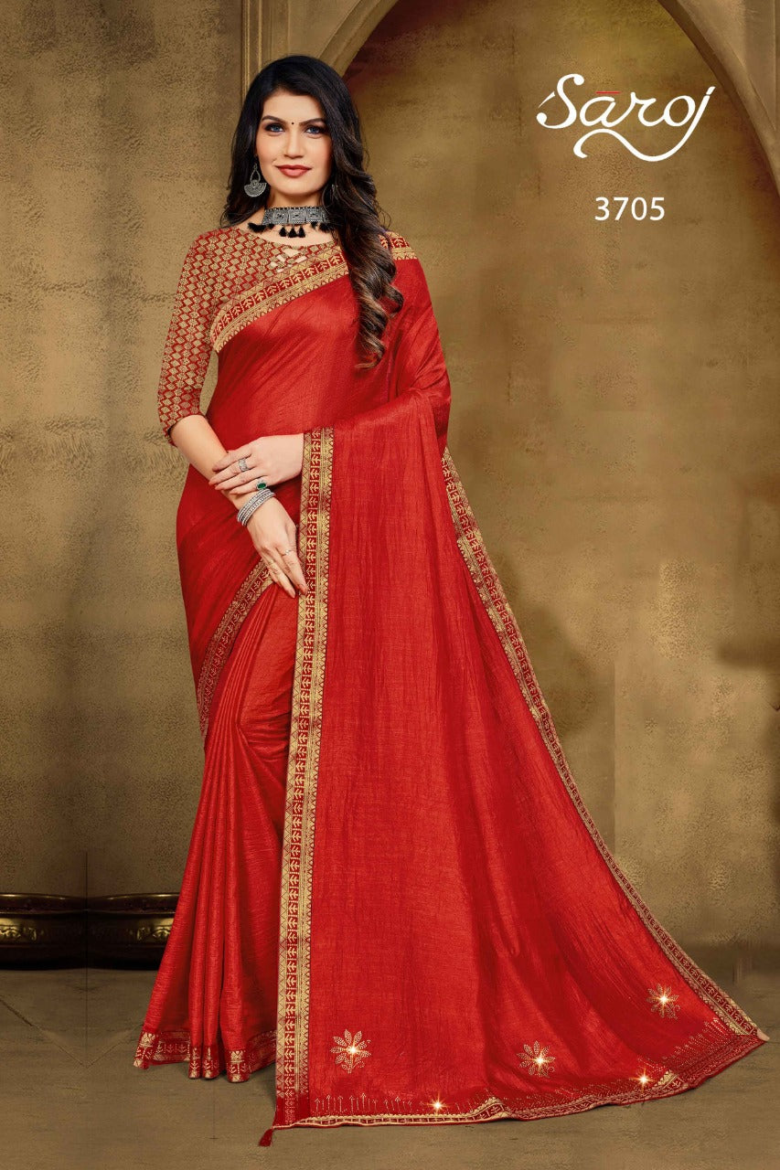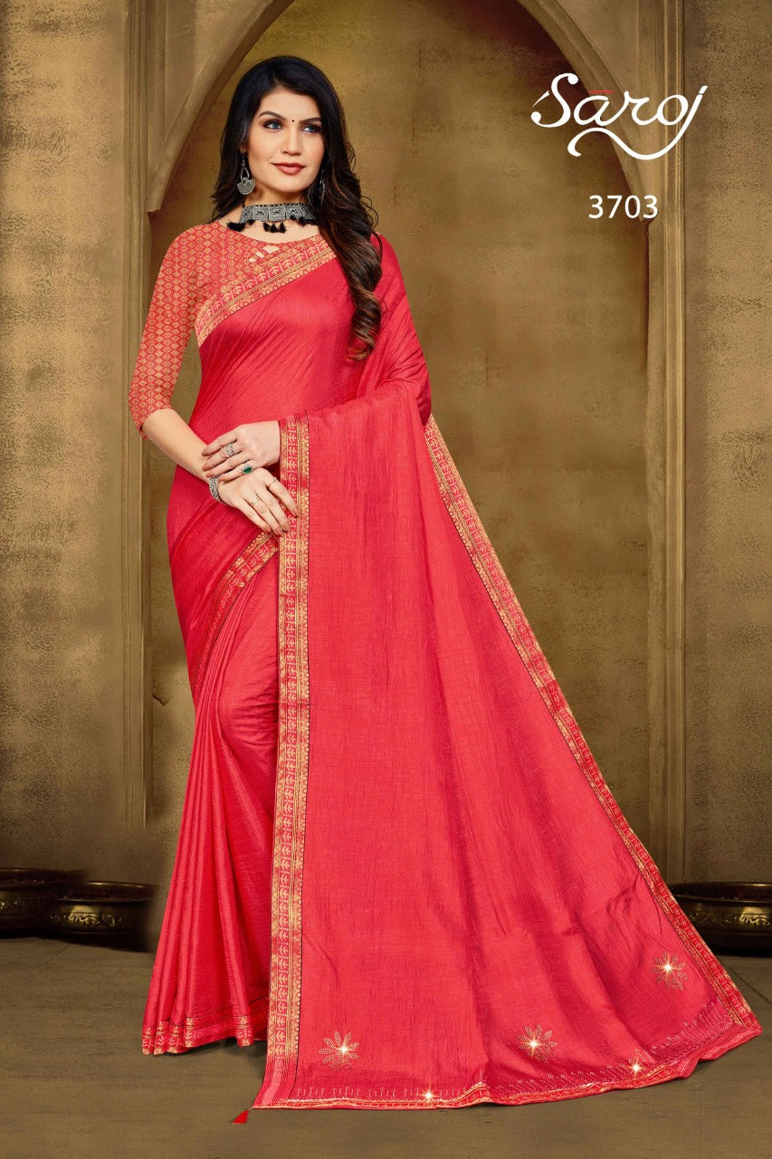 Fabric: Soft Vichitra Silk With Swarovski & Lace. Blouse: Brocade Silk With Lace. |