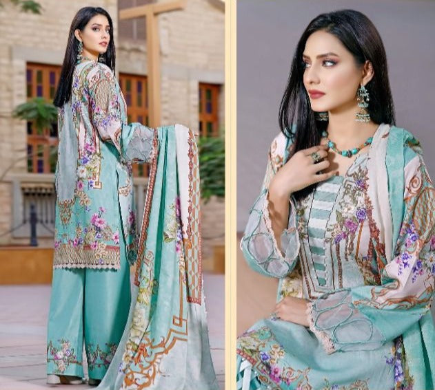 Top : Pure Cotton Lawn Print With Exclusive  Embroidery Patches                                                                                Bottom : Semi Lawn                                                                     Dupatta : Chiffon / Cotton