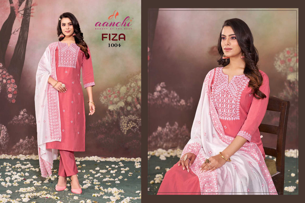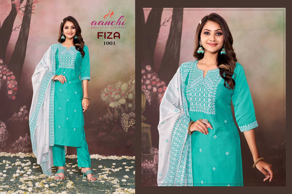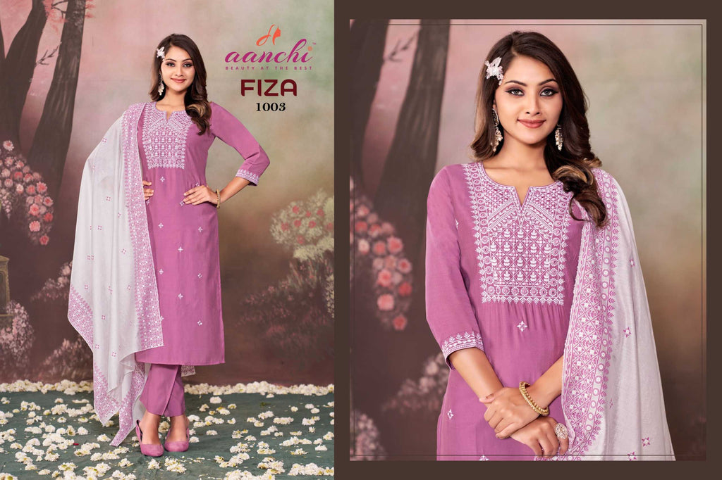Aanchi Fiza Casual Wear Roman Silk Top Bottom And Printed Dupatta Kurti Set