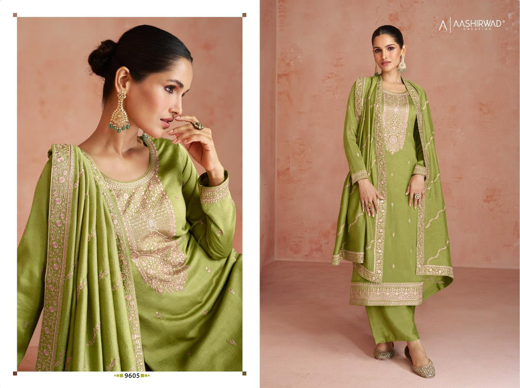 Aashirwad Creation Coco Silk Heavy Embroidery Work Fancy Designer Partywear Salwar Kameez