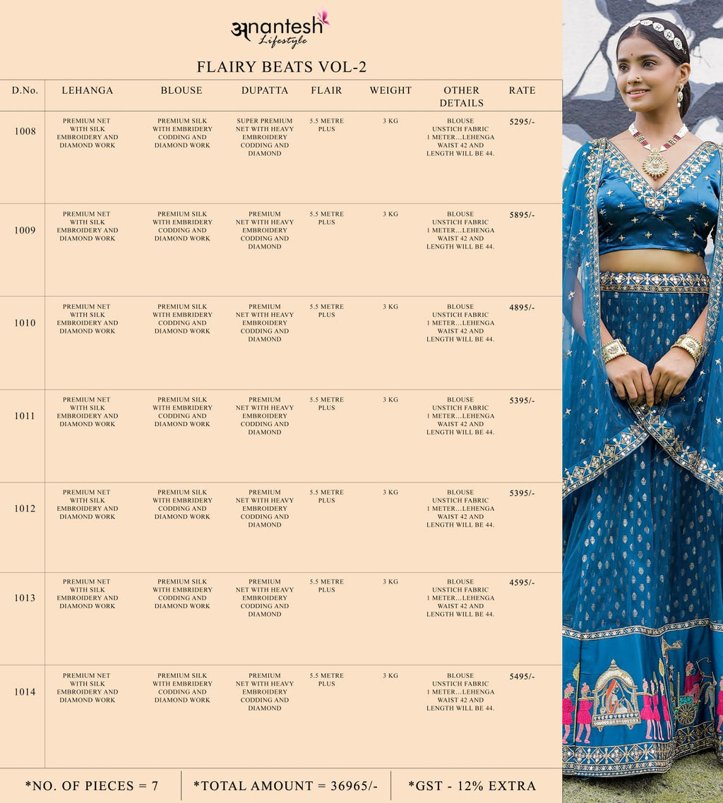 Anantesh Lifestyle Flairy Beays Vol 2 Premium Silk With Embroidery Work Lehngas