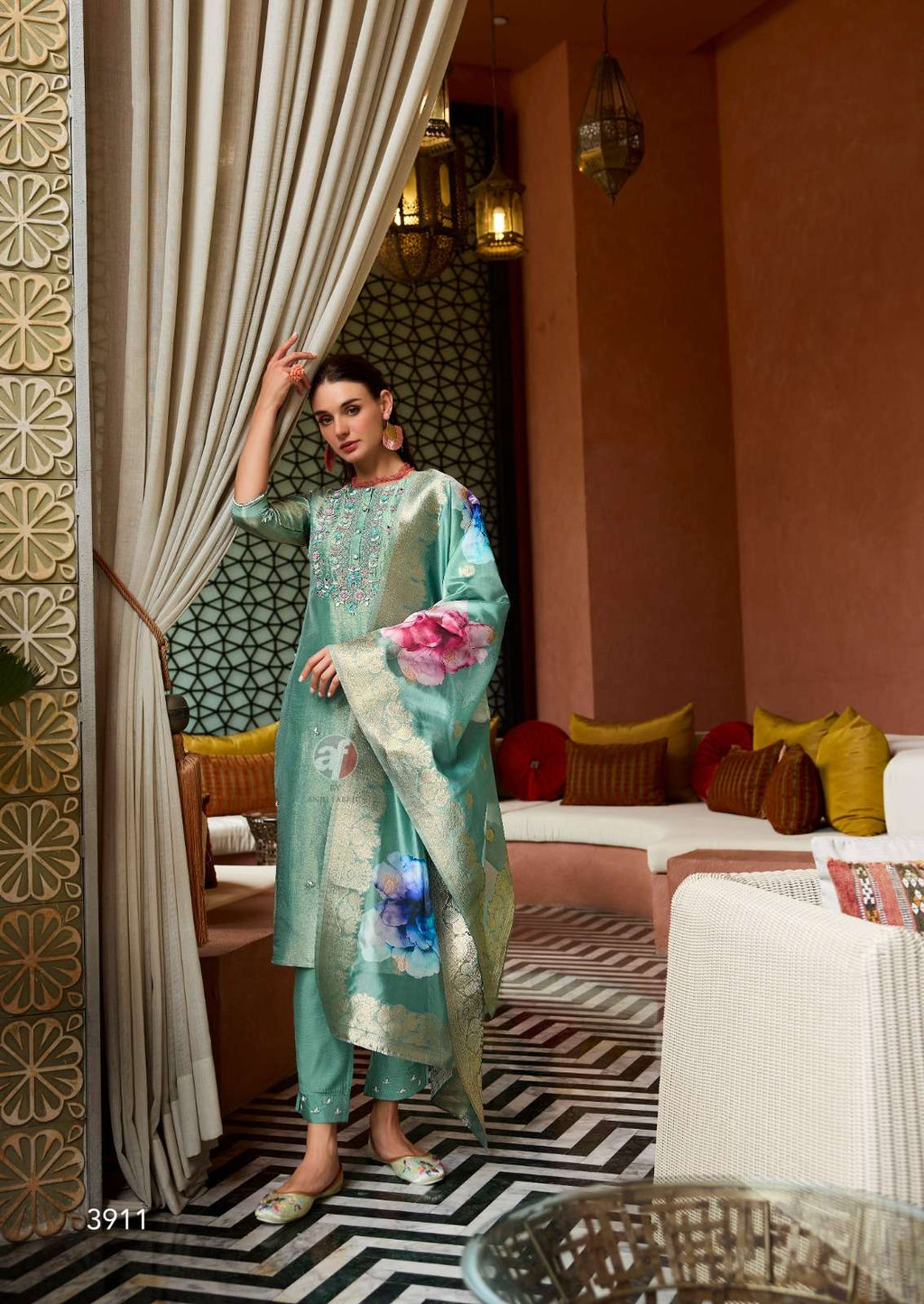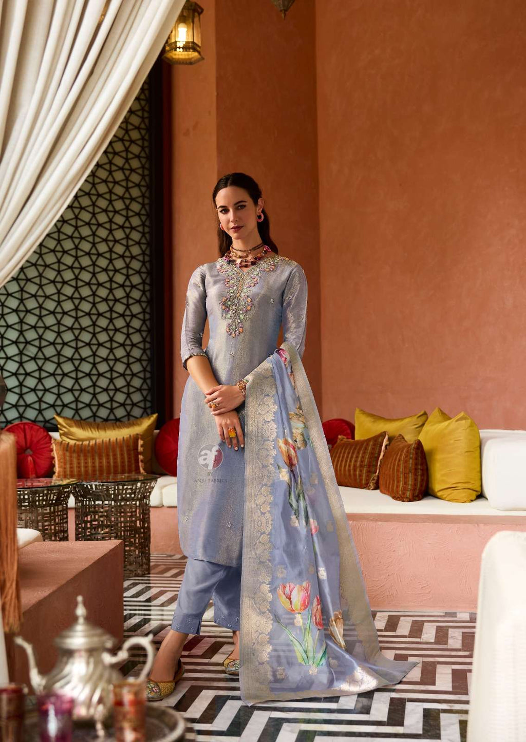 kurti pant with dupatta details top fabric - pure silk tissue shimmer bottom fabric - heavy santoon inner fabric - pure cotton dupatta - pure organza jacquard with digital print size - m,l,xl,2xl,3xl now big size is also available |
