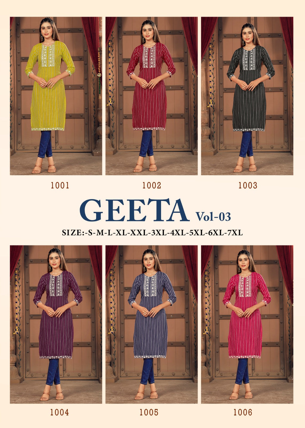Banwery Fashion Geeta Vol 3 Silk Regular Wear Fancy Strip Kurtis