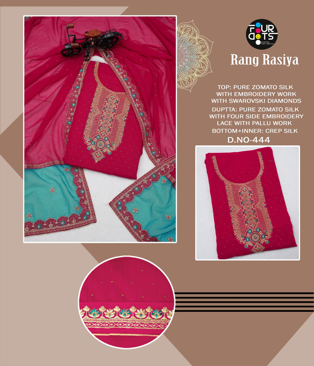 Four Dots Rang Rasiya 441-444 Pure Silk With Embroidery Daimond Work Salwar Suit