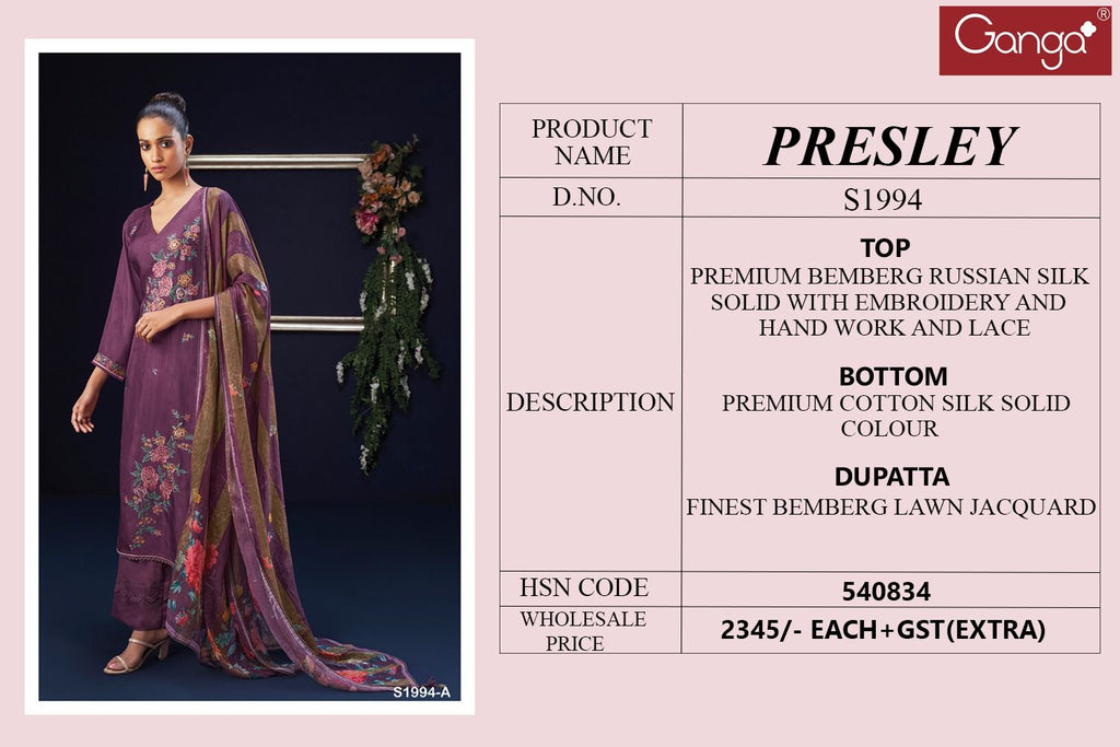 Ganga Presley 1994 Silk With Embroidery Fancy Salwar Suits