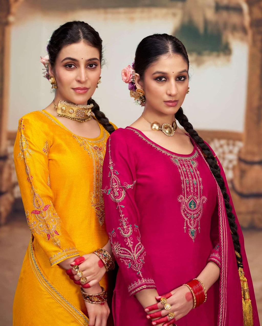 top:- silk with fancy code work and heavy sleev work and full innerbtop + sleeve bottom:- silk with fancy code work lace pant and full inner dupatta:- silk with heavy dupatta work and four side border total design:- 04 size:- m, l, xl, xxl, 3xl |