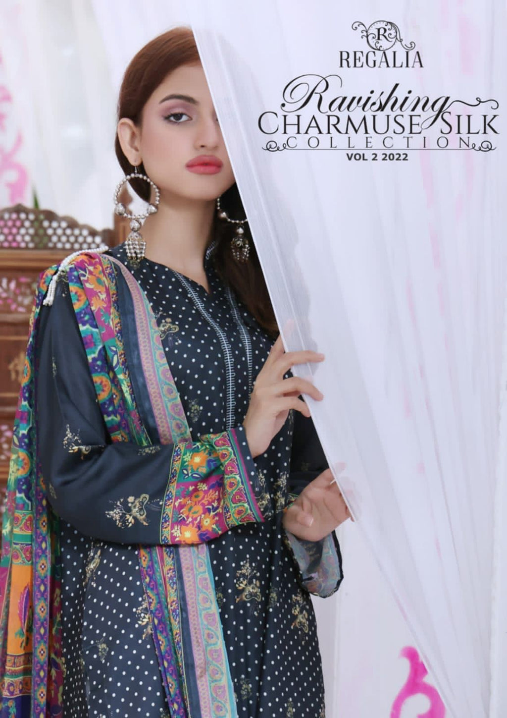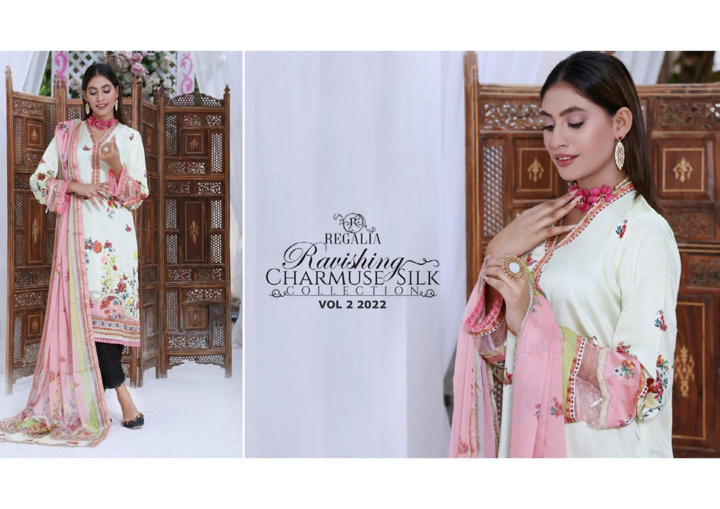 Regalia Ravishing Charmeuse Silk With Beautiful Work Stylish Designer Casual Look Salwar Kameez