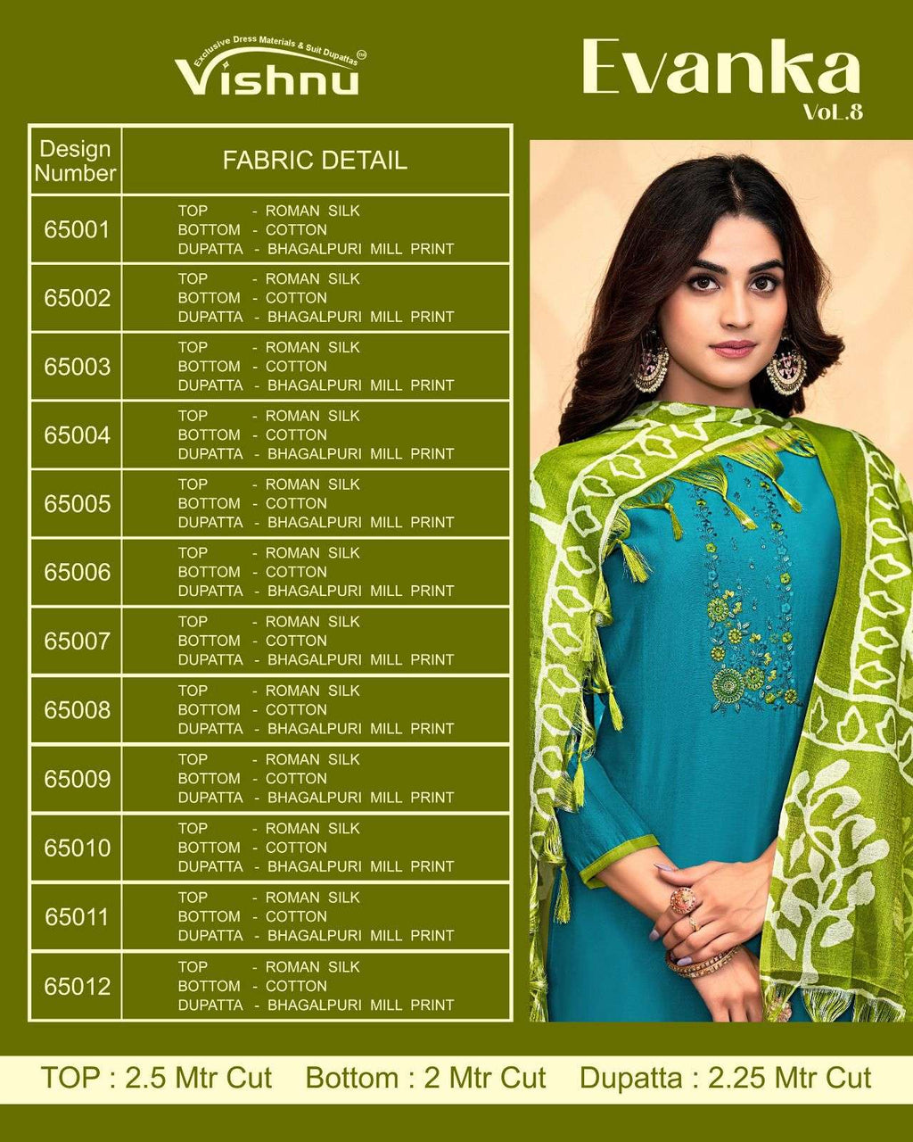 top: roman silk bottom:cotton dupatta: bhagalpuri mill print 12 pcs |