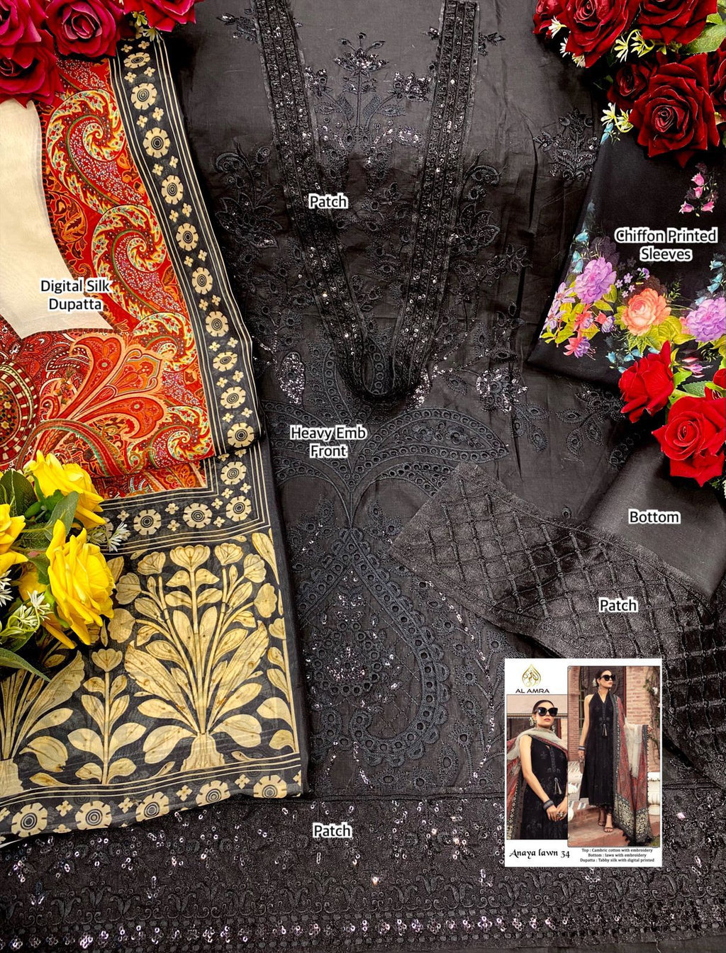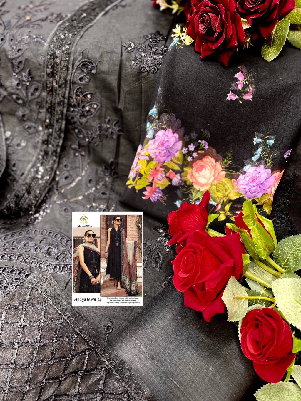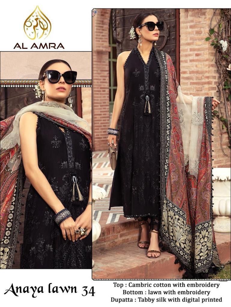 Al Amra Anaya Lawn 34 Cambric Cotton With Embroidery Work Designer Wear Salwar Suit