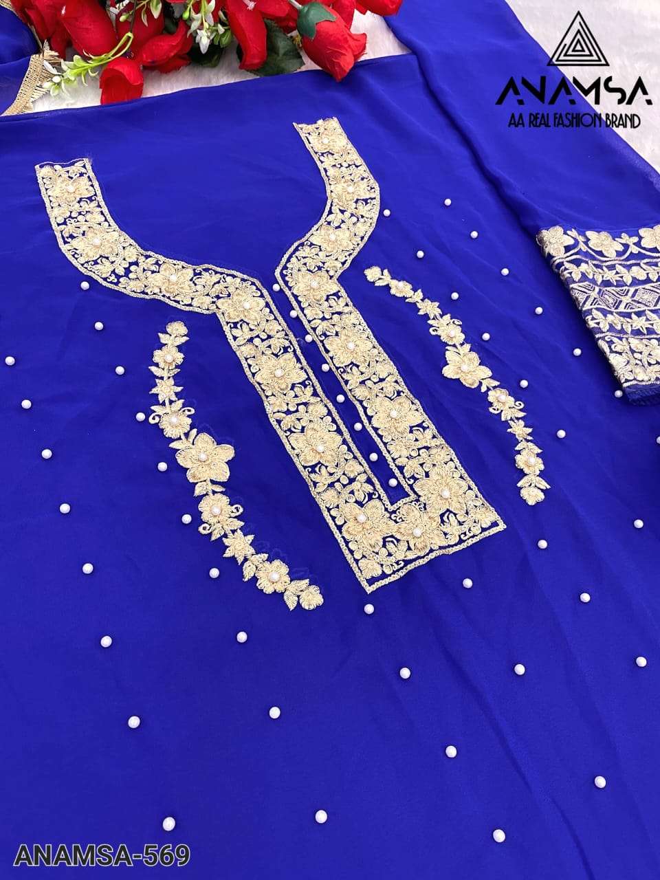 heavy pure fox georgette with heavy embroidered with sequence work very beautiful semi stitched outfit unstitched heavy dull shantoon bottom very beautiful pure georgette heavy fancy dupatta with moti work inner- dull shantoon |