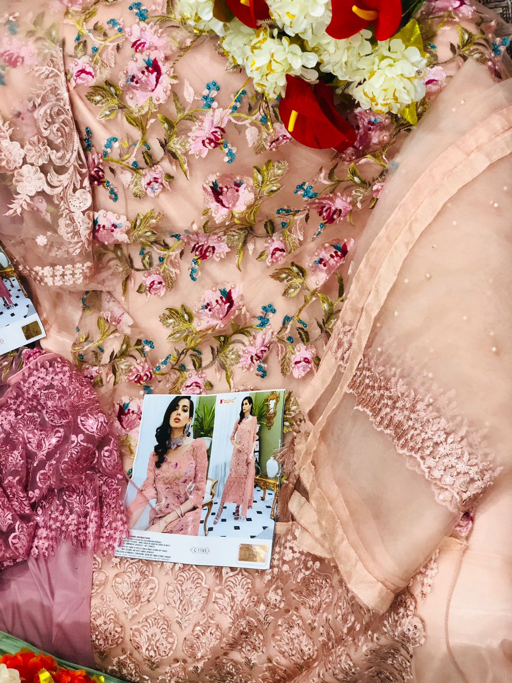 Dupatta:- NET EMBROIDERED WITH PEARL WORK