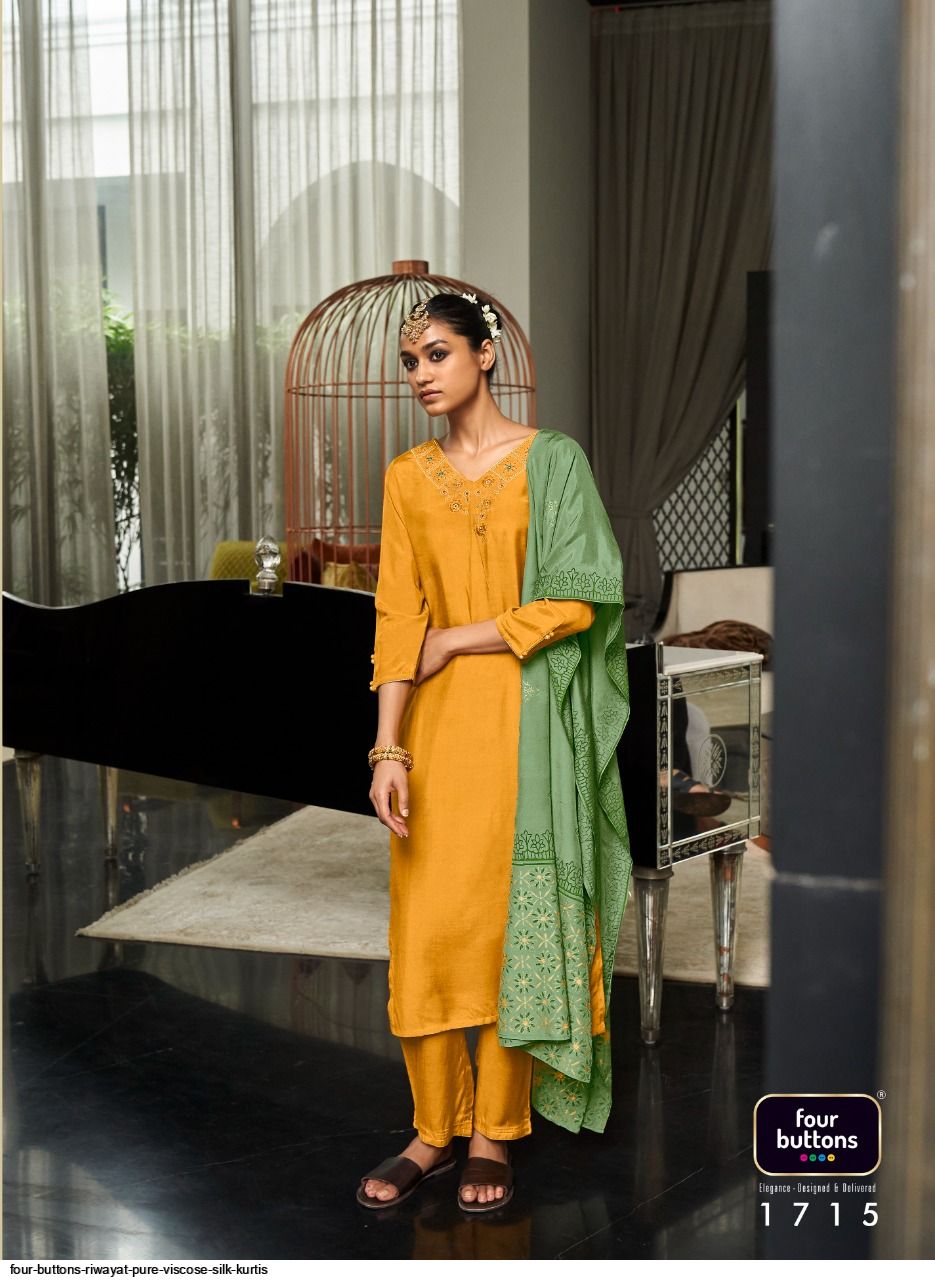 Four Buttons Dno 1715 Viscose Silk Stylish Designer Wear Kurti