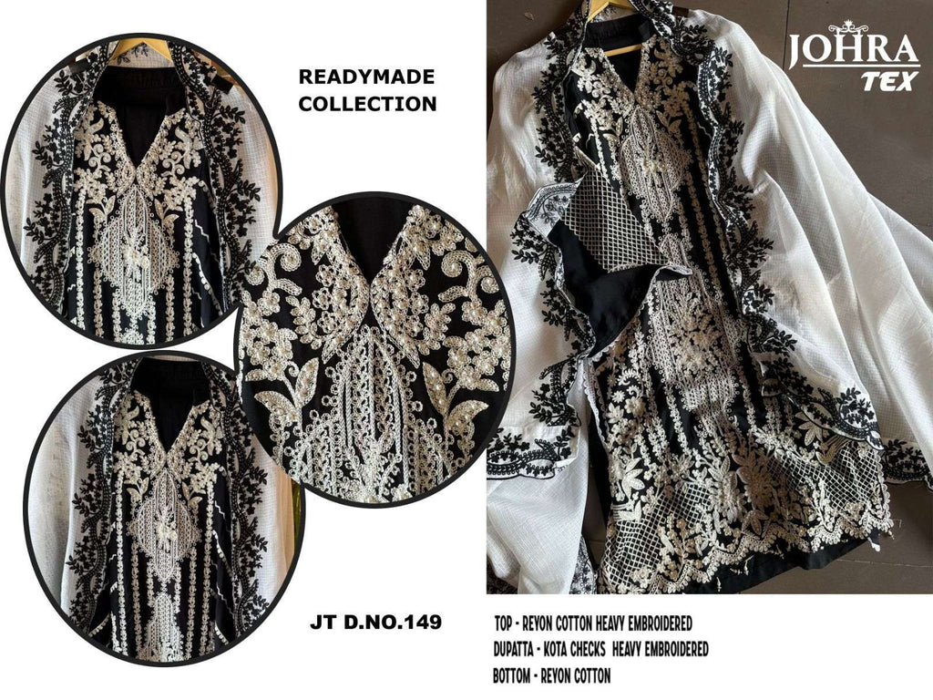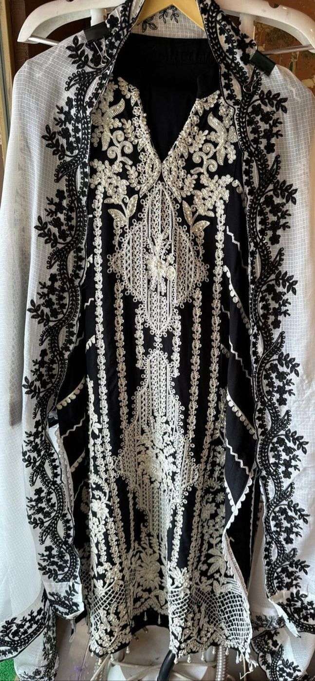 top :- reyon cotton heavy embroidered with (perals moti work) dupatta :- kota checks heavy embroidered bottom:-reyon cotton rate:- 1299/- |